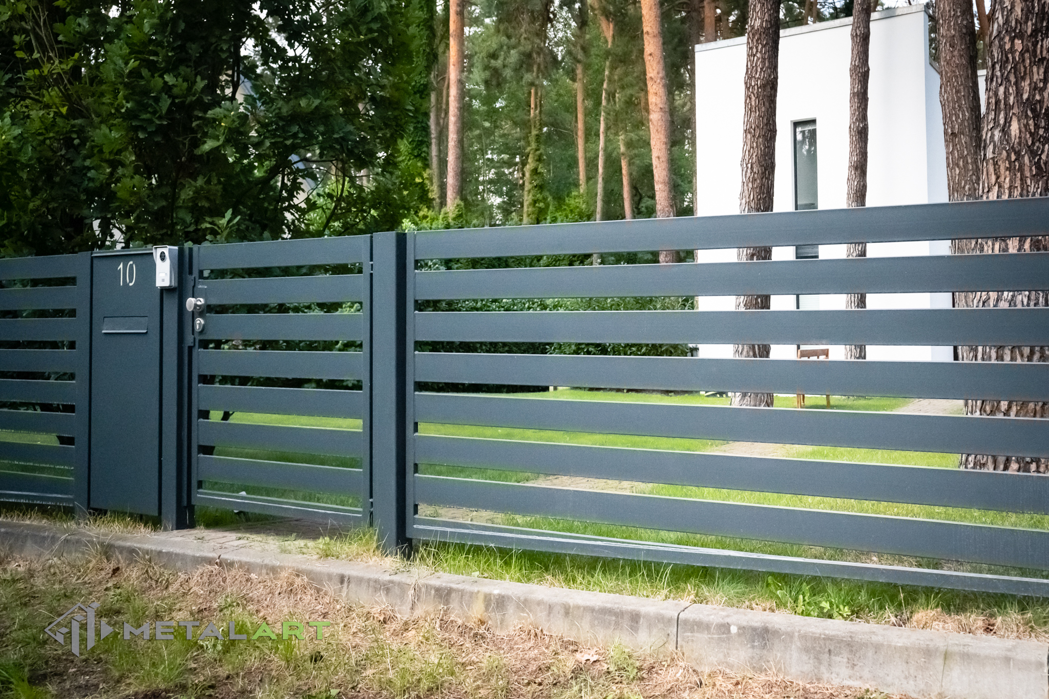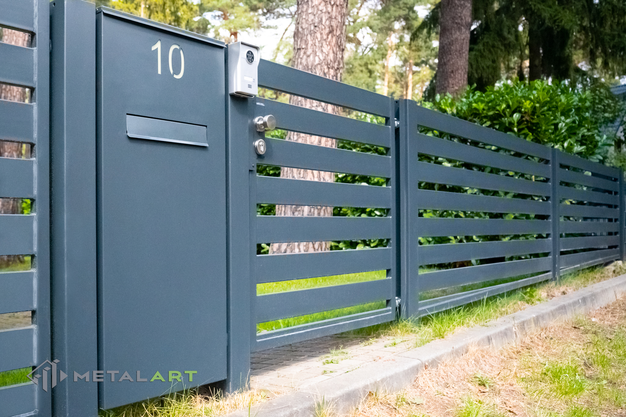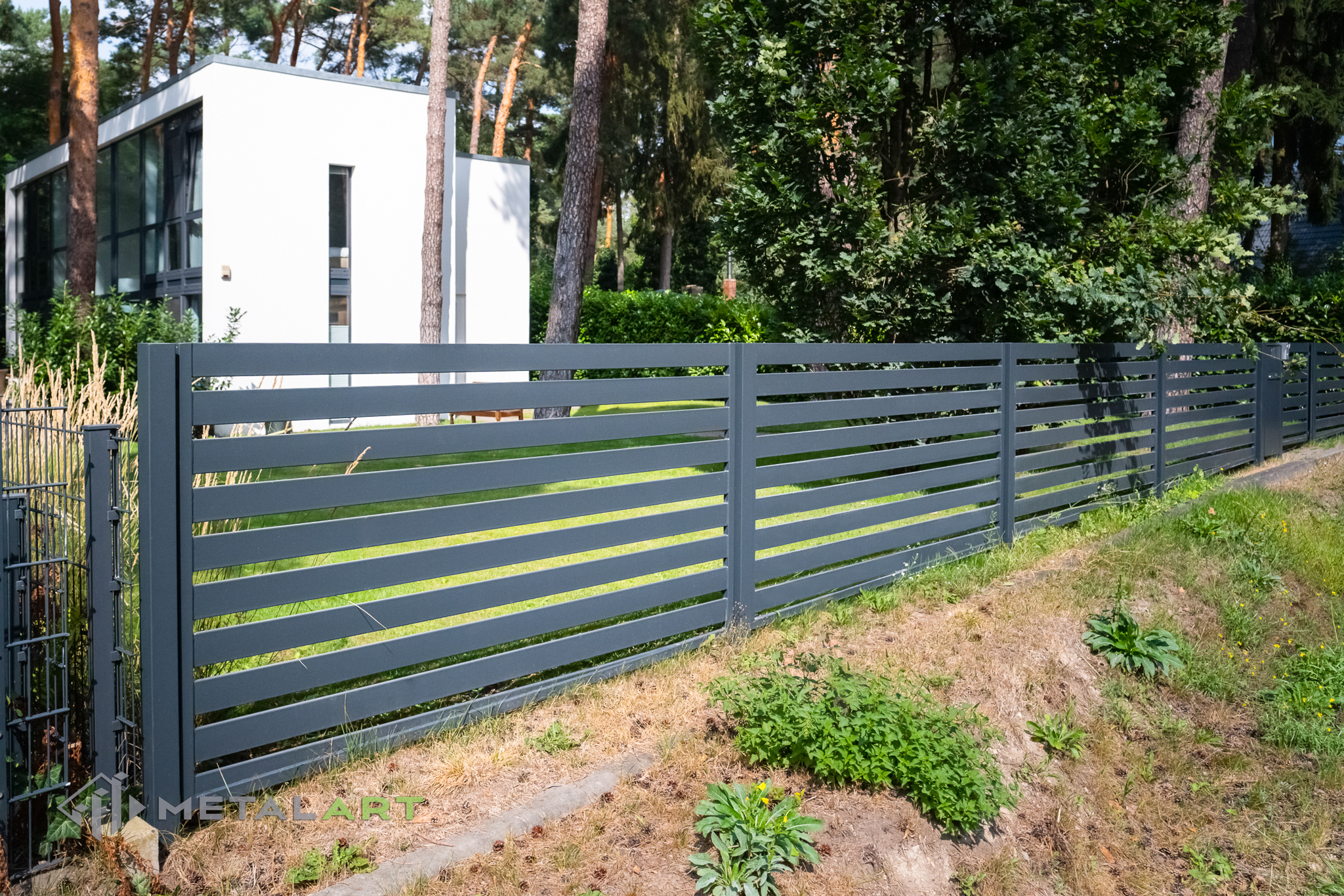 Dieses Zaunmodell harmoniert in seiner Grundform gut mit moderner Architektur. Es wird von Kunden gewählt, die Wert auf Einfachheit legen, den Raum deutlich hervorheben und die Sichtbarkeit begrenzen wollen.