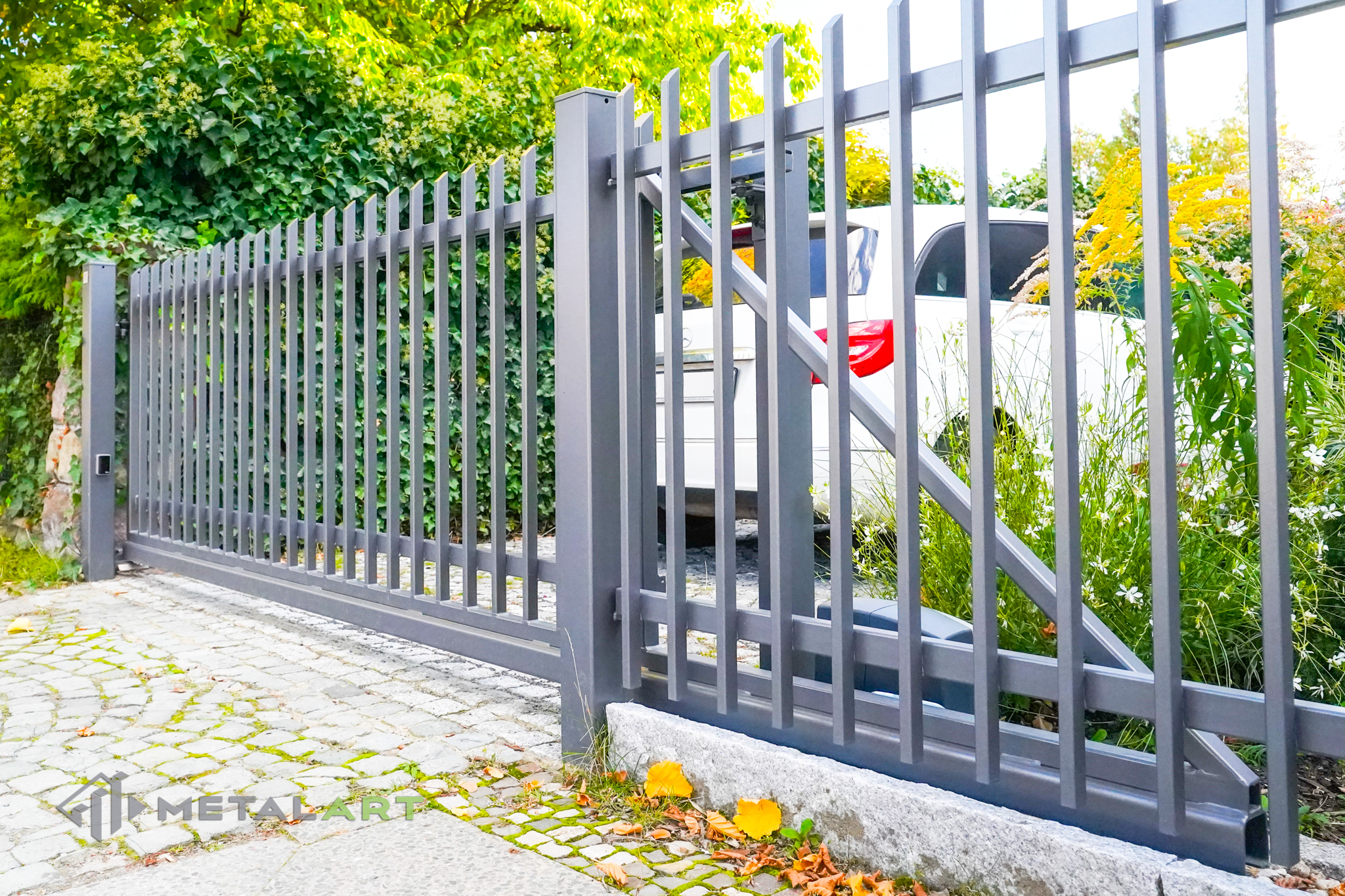 Ein freitragendes Schiebetor ist eine Art von Schiebetor, das nicht auf einer Bodenschiene läuft, sondern seitlich über dem Boden "schwebt". Das Tor wird an einem Ausleger gehalten, der fest auf einer Seite montiert ist. Es bewegt sich entlang einer Führungsschiene, die meist am unteren Querbalken des Tores befestigt ist, aber ohne Kontakt zum Boden.
