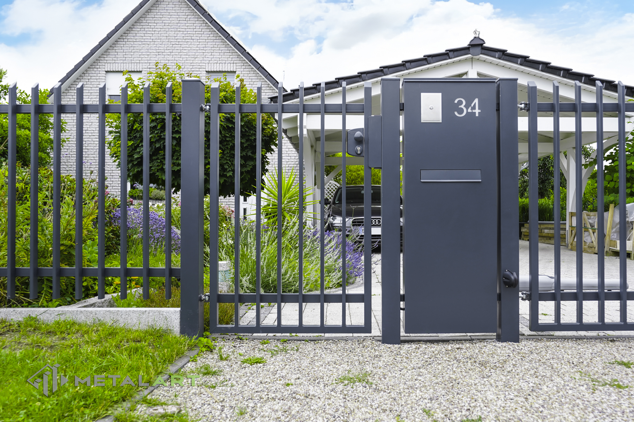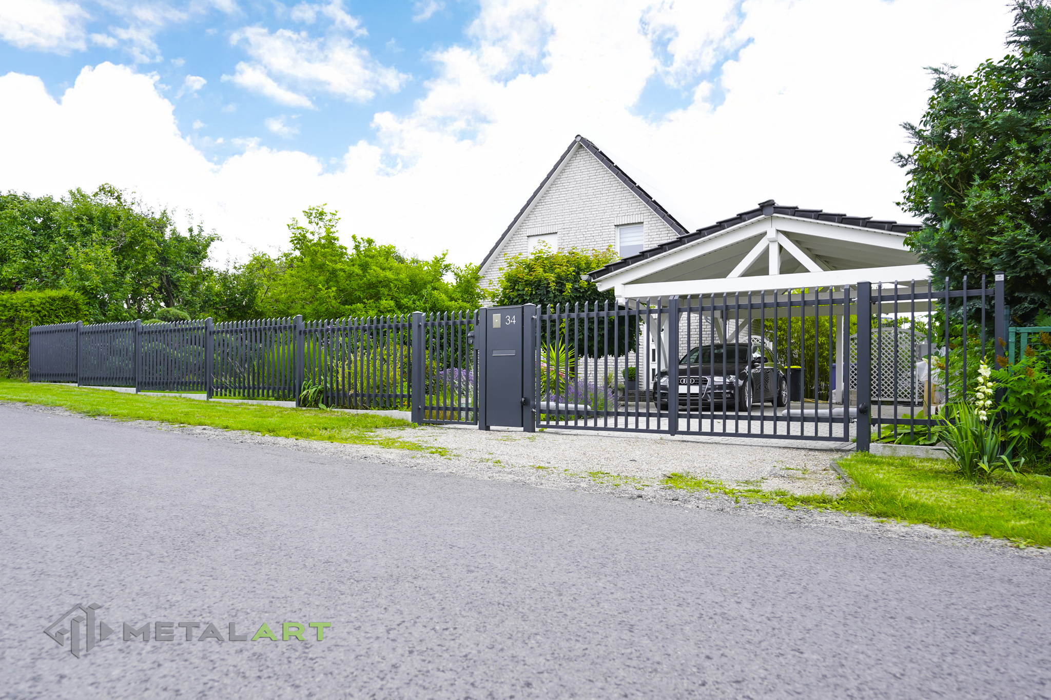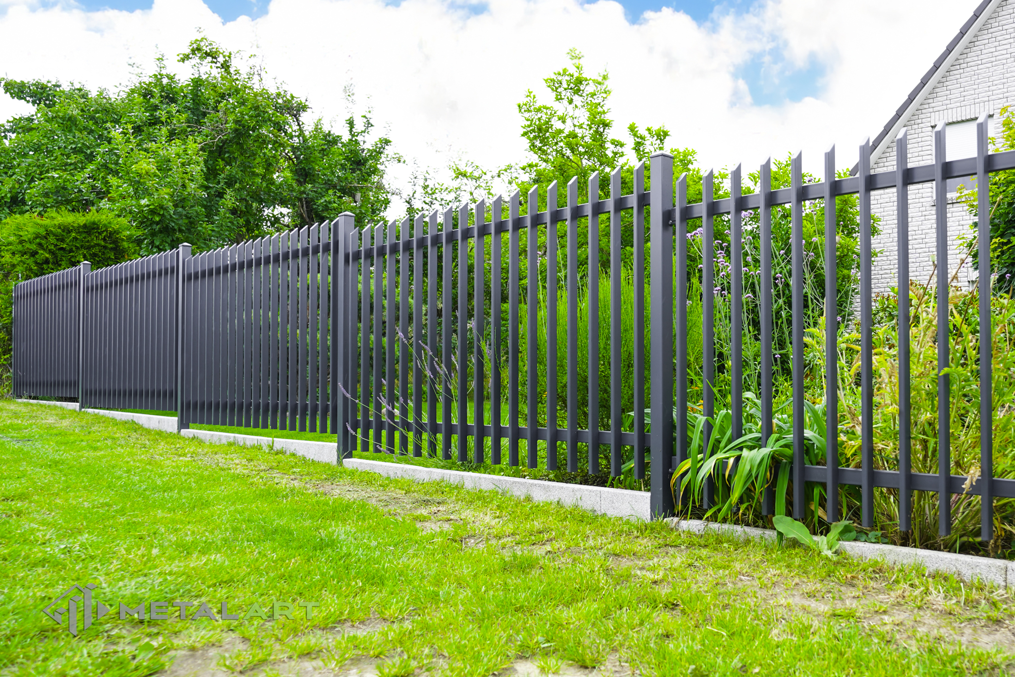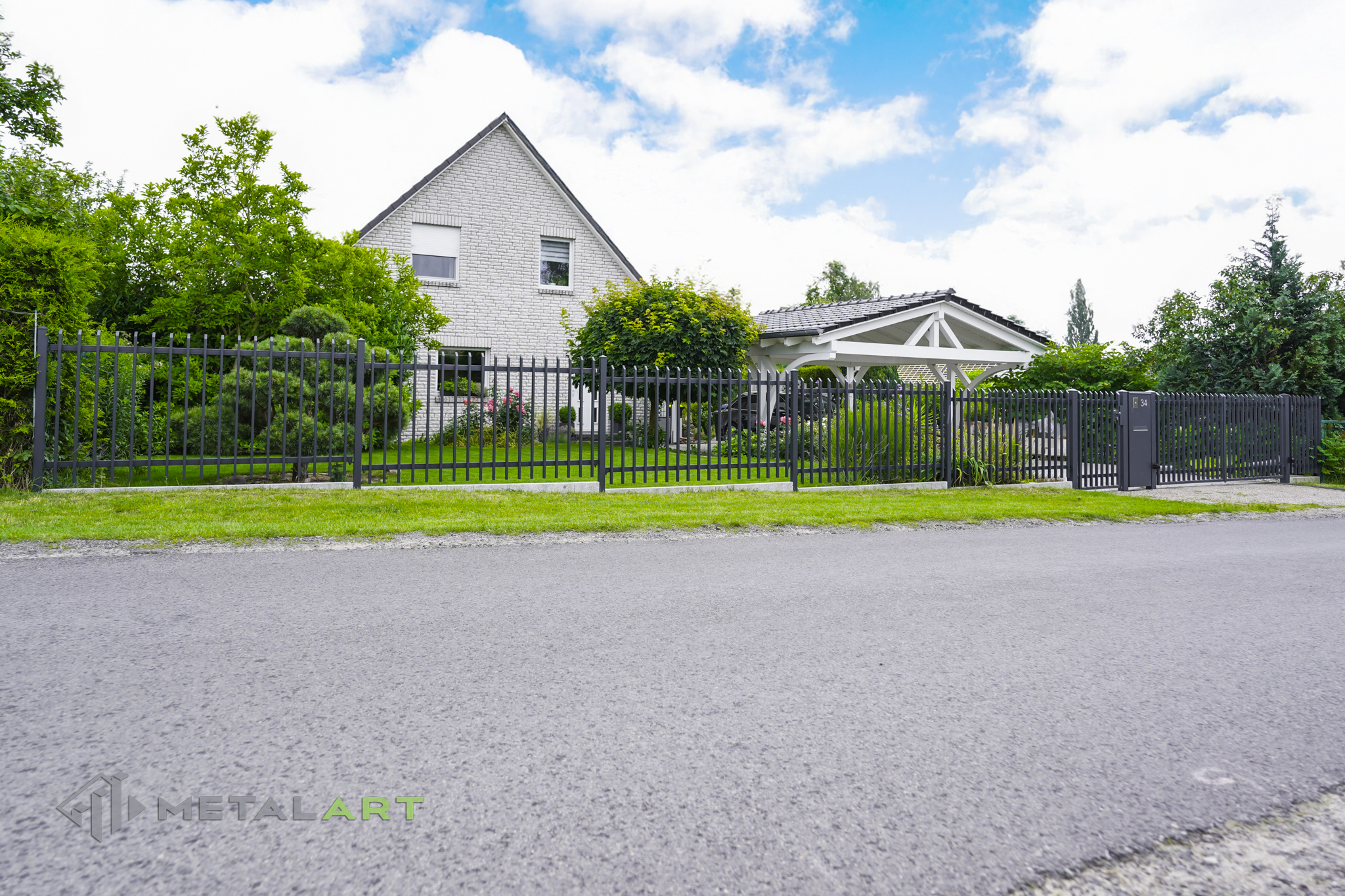 Ein scheinbar gewöhnlicher Zaun, doch dieses Design ist überraschend. Das Material spielt hier eine wichtige Rolle. Der Zaun sieht aus jeder Perspektive anders aus und spielt mit seiner Dreidimensionalität. Der Vorteil dieses Designs ist, dass es neutral bleibt und in viele architektonische Lösungen passt. Die Dicke der Zaunstäben und der Abstand zwischen ihnen, die Höhe und Breite können auf Ihre Bedürfnisse abgestimmt werden. Außerdem können die Zaunstäbe auf unterschiedliche Weise montiert werden.