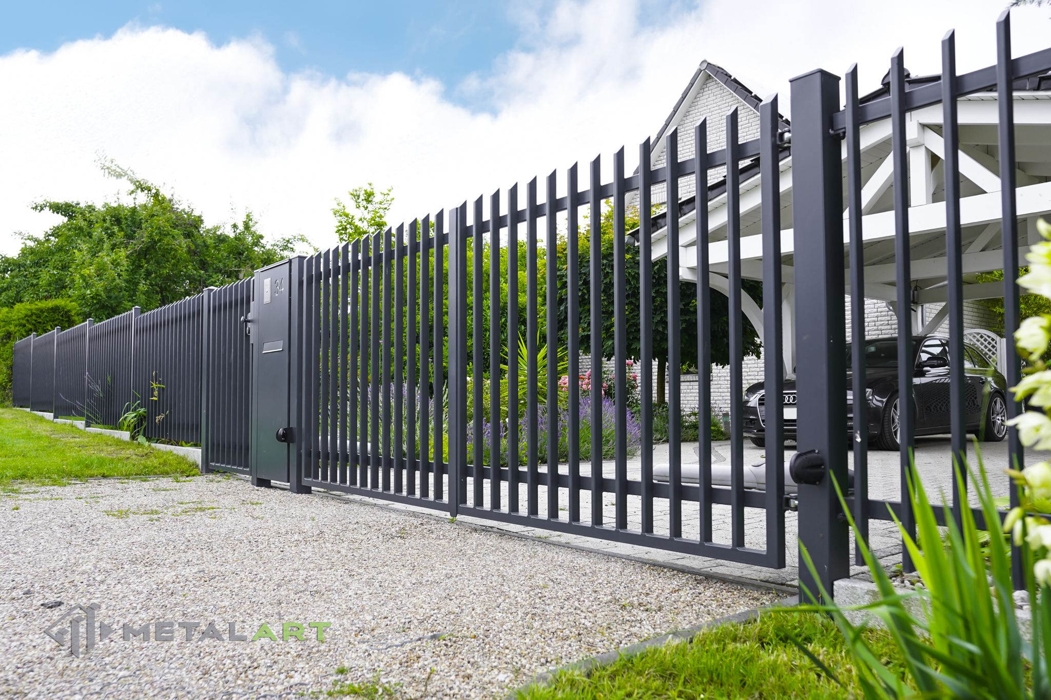 Ein freitragendes Schiebetor ist eine Art von Schiebetor, das nicht auf einer Bodenschiene läuft, sondern seitlich über dem Boden "schwebt". Das Tor wird an einem Ausleger gehalten, der fest auf einer Seite montiert ist. Es bewegt sich entlang einer Führungsschiene, die meist am unteren Querbalken des Tores befestigt ist, aber ohne Kontakt zum Boden.