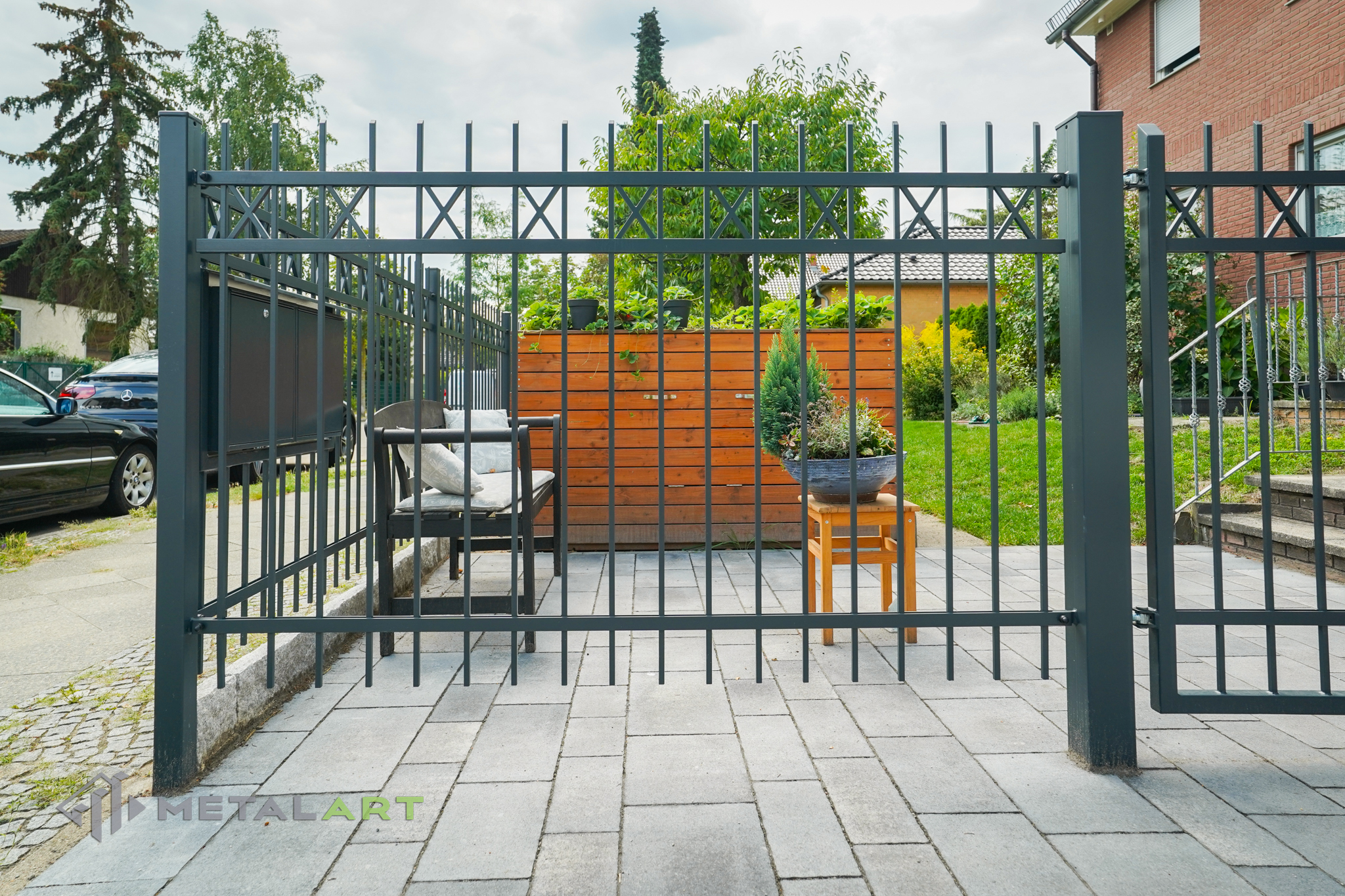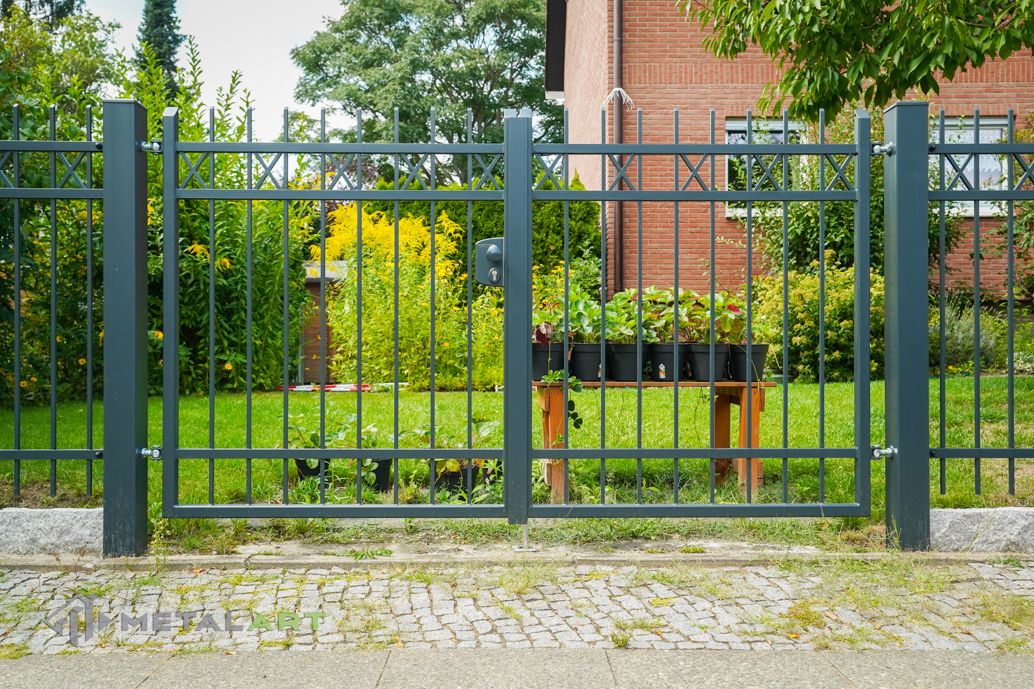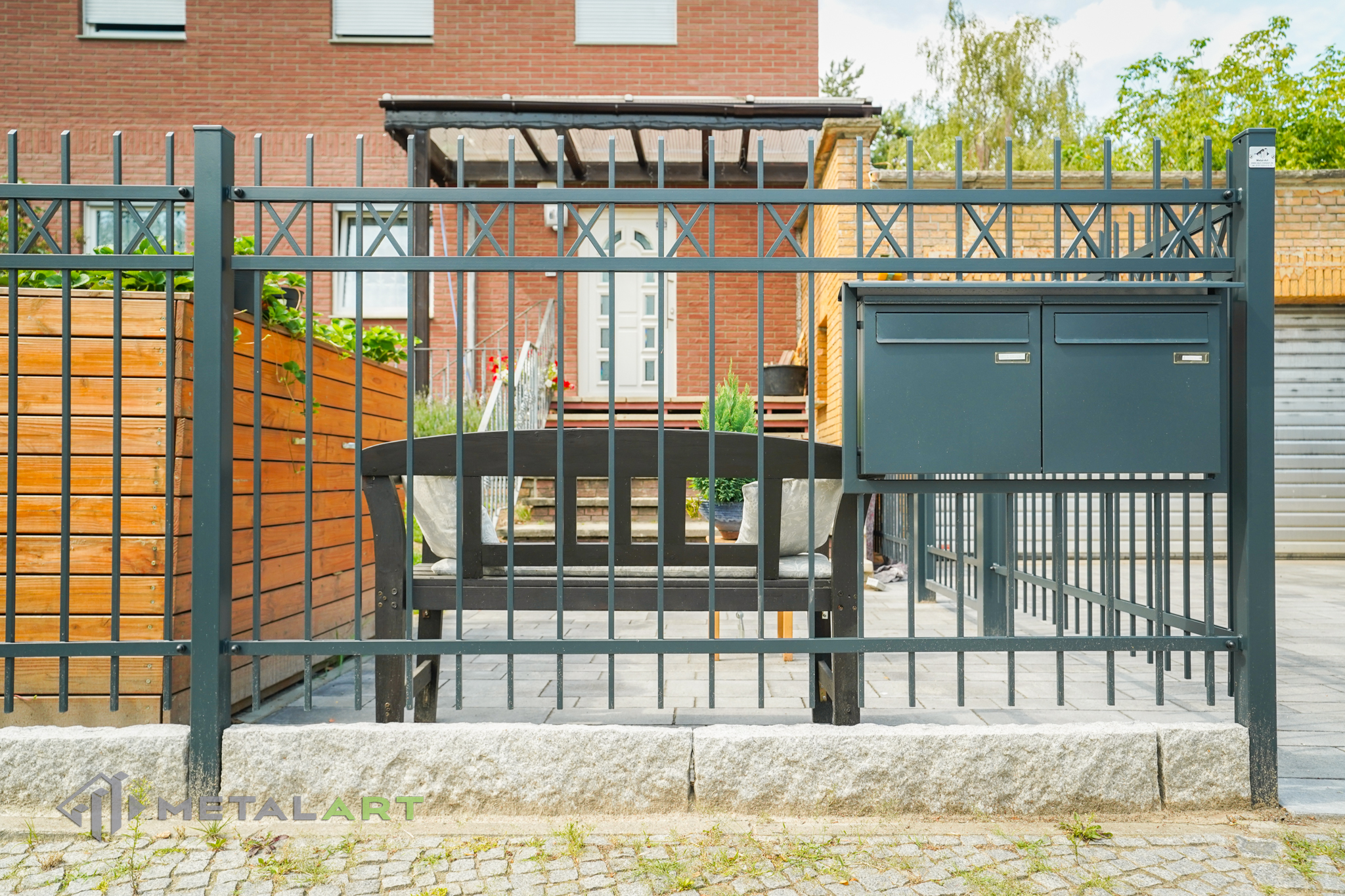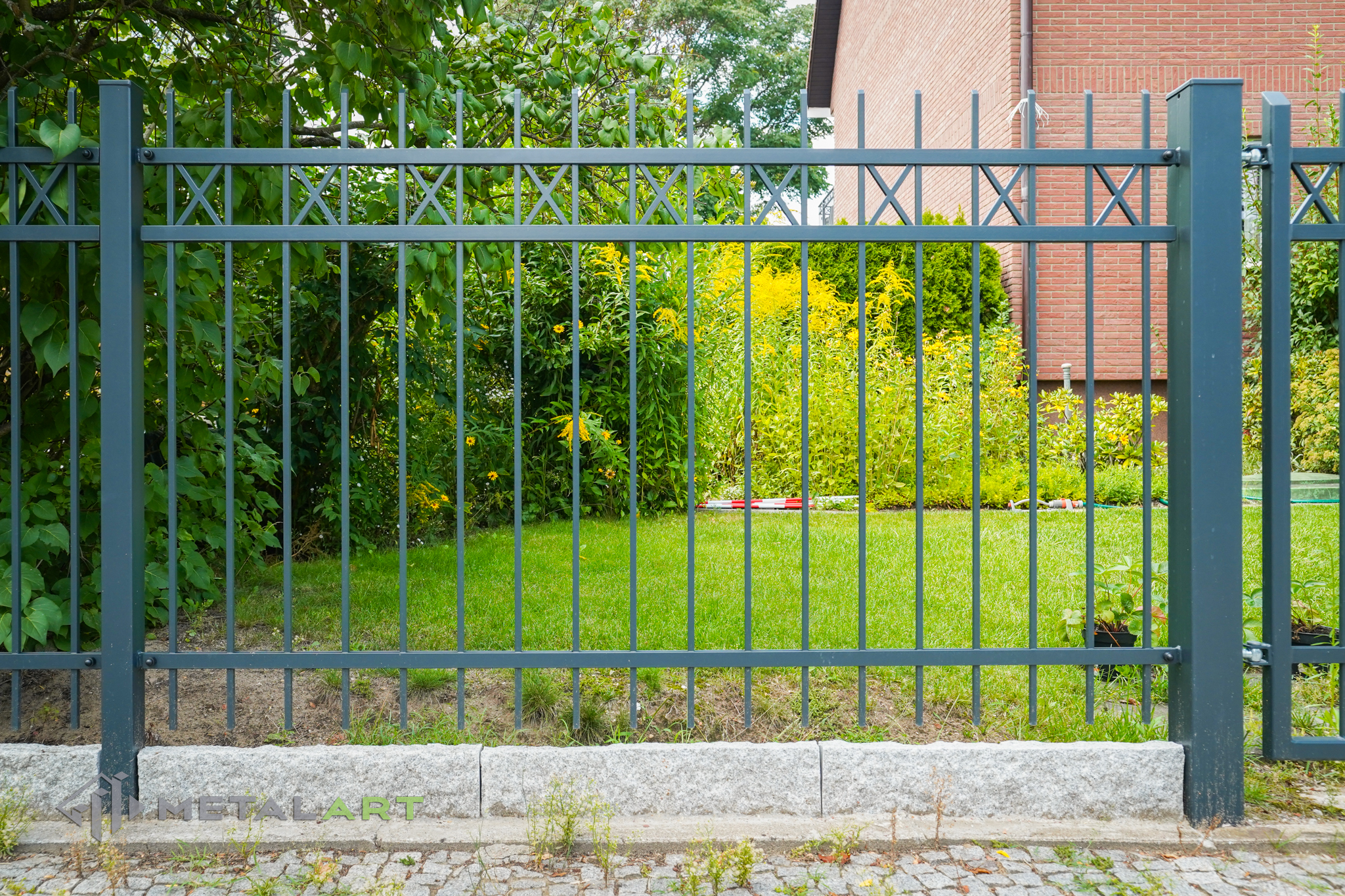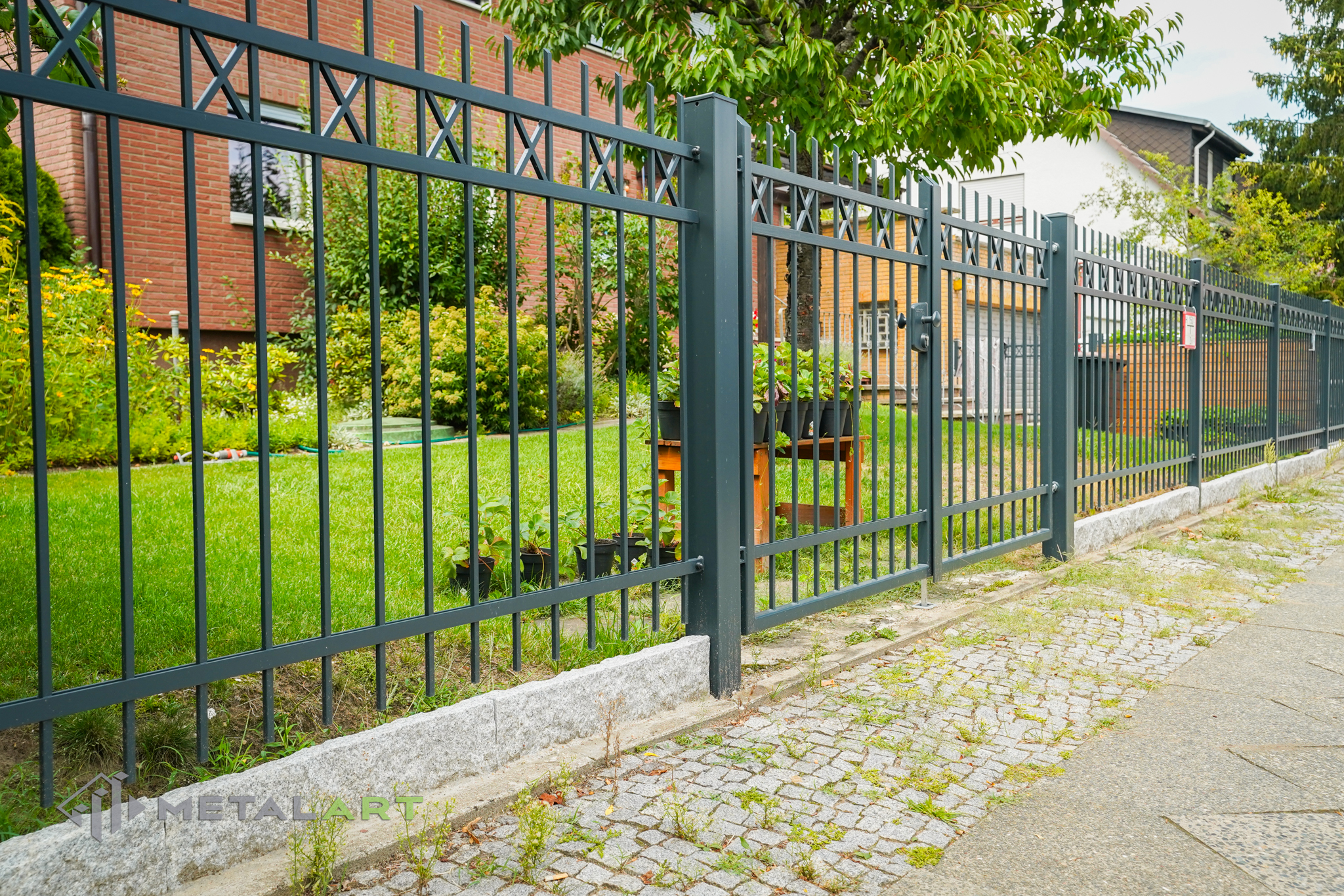 In diesem Projekt wurde der obere und untere Teil des Zauns dekoriert. Gerade Linien sind das dominierende Element, das das Zaunfeld verdickt, und das Ganze wird mit einem anmutigen Ornament auf der Oberseite abgeschlossen. Die Zaunkappen verleihen dem Zaun Erhabenheit und ordnen gleichzeitig die Vielzahl der hier verwendeten Ornamente. Ein wirklich schöner Zaun!