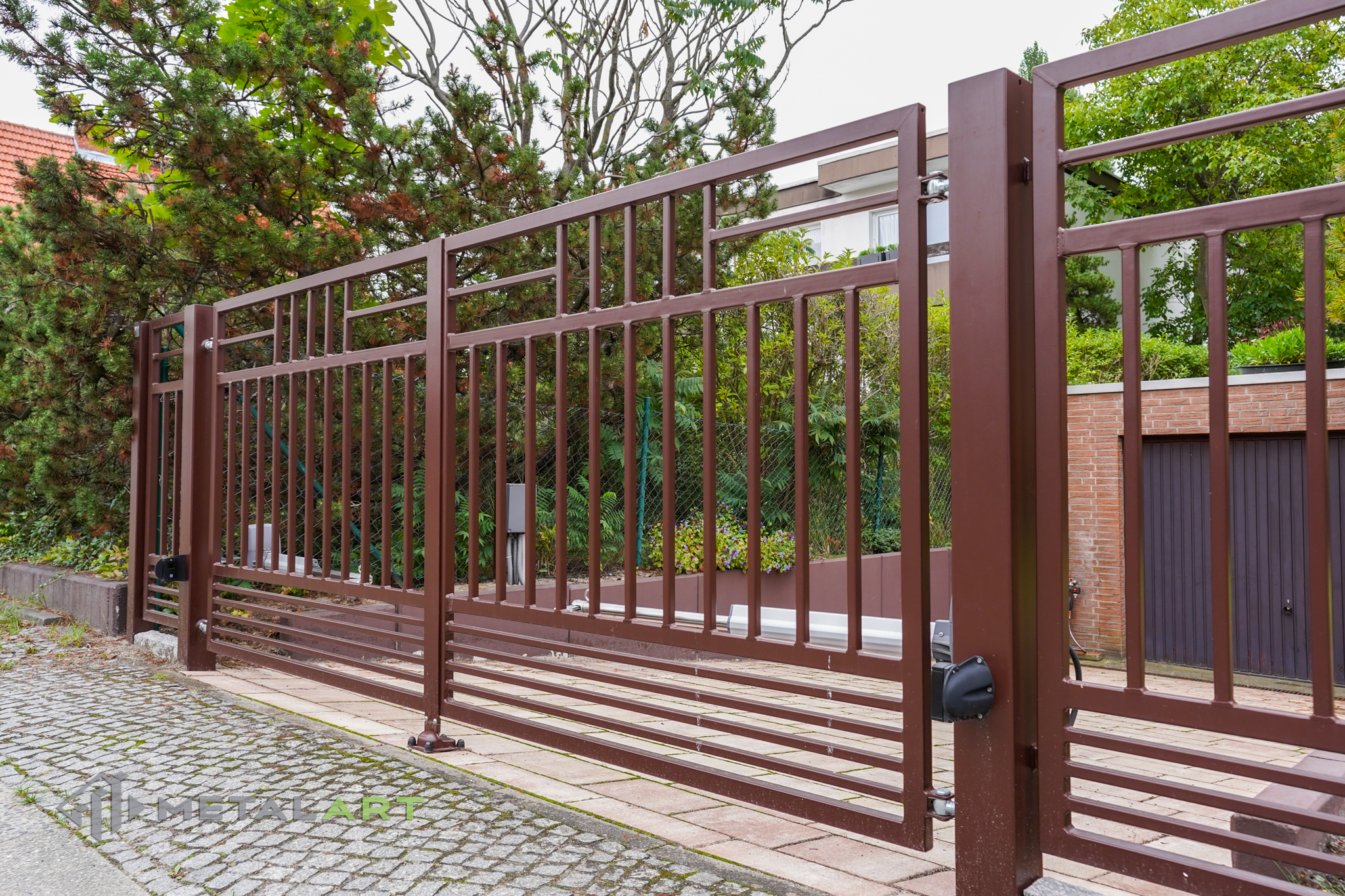 Das Doppelflügeltor ist eine der Varianten (neben dem einflügeligen Tor und dem Schiebetor), die wir Ihnen anbieten. Es hängt von Ihren individuellen Bedürfnissen ab, welche Art von Tor verwendet wird.