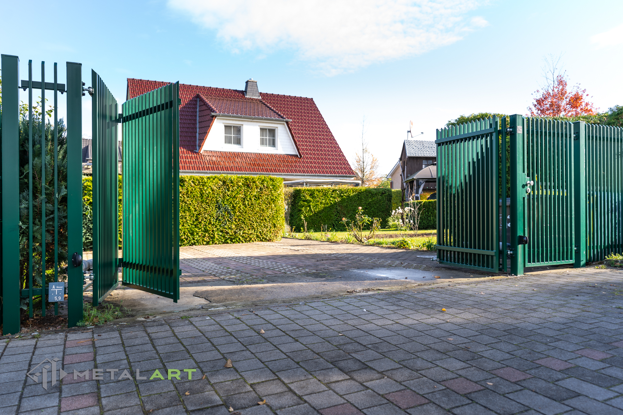 Ein scheinbar gewöhnlicher Zaun, doch dieses Design ist überraschend. Das Material spielt hier eine wichtige Rolle. Der Zaun sieht aus jeder Perspektive anders aus und spielt mit seiner Dreidimensionalität. Der Vorteil dieses Designs ist, dass es neutral bleibt und in viele architektonische Lösungen passt. Die Dicke der Zaunstäben und der Abstand zwischen ihnen, die Höhe und Breite können auf Ihre Bedürfnisse abgestimmt werden. Außerdem können die Zaunstäbe auf unterschiedliche Weise montiert werden.