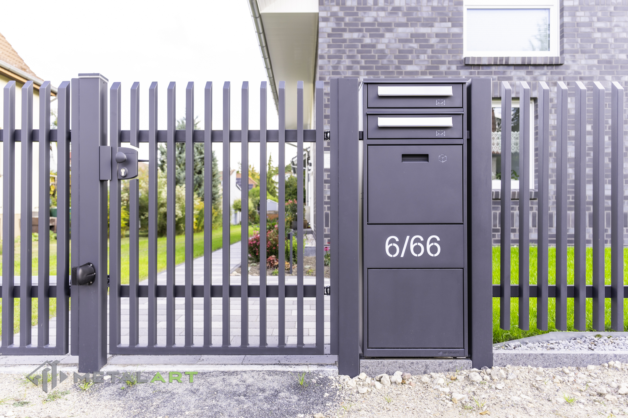 Ein scheinbar gewöhnlicher Zaun, doch dieses Design ist überraschend. Das Material spielt hier eine wichtige Rolle. Der Zaun sieht aus jeder Perspektive anders aus und spielt mit seiner Dreidimensionalität. Der Vorteil dieses Designs ist, dass es neutral bleibt und in viele architektonische Lösungen passt. Die Dicke der Zaunstäben und der Abstand zwischen ihnen, die Höhe und Breite können auf Ihre Bedürfnisse abgestimmt werden. Außerdem können die Zaunstäbe auf unterschiedliche Weise montiert werden.