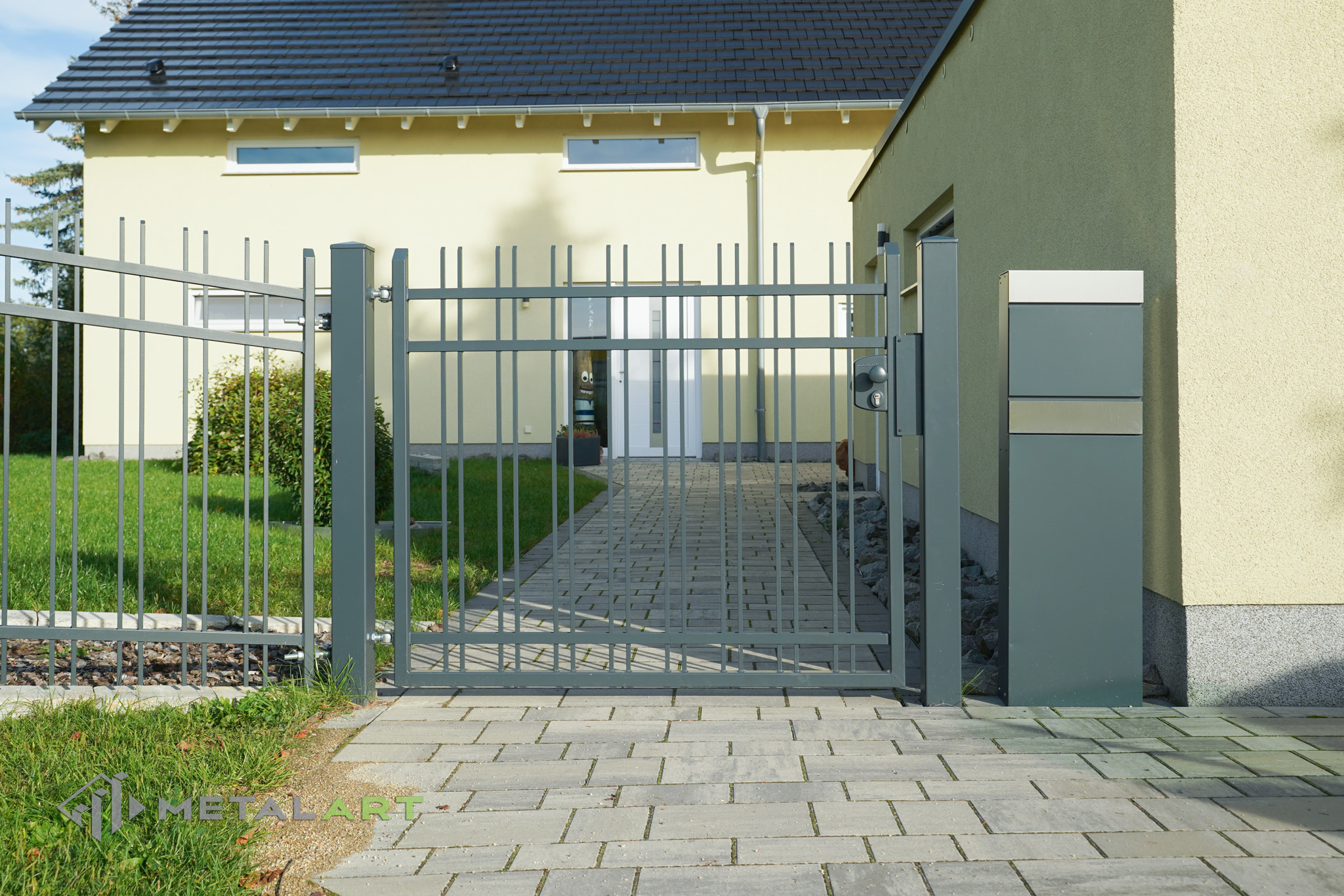 Die Pforten werden immer auf das Design des Zauns und auf Ihre individuellen Bedürfnisse abgestimmt. Die Briefkästen oder Briefkastenboxen werden in der Regel in der Nähe der Pforte installiert.