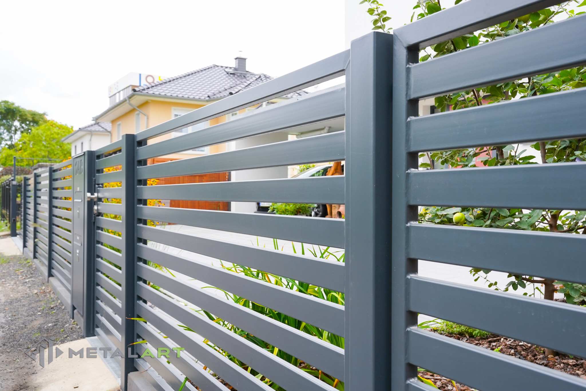 Dieses Zaunmodell harmoniert in seiner Grundform gut mit moderner Architektur. Es wird von Kunden gewählt, die Wert auf Einfachheit legen, den Raum deutlich hervorheben und die Sichtbarkeit begrenzen wollen.