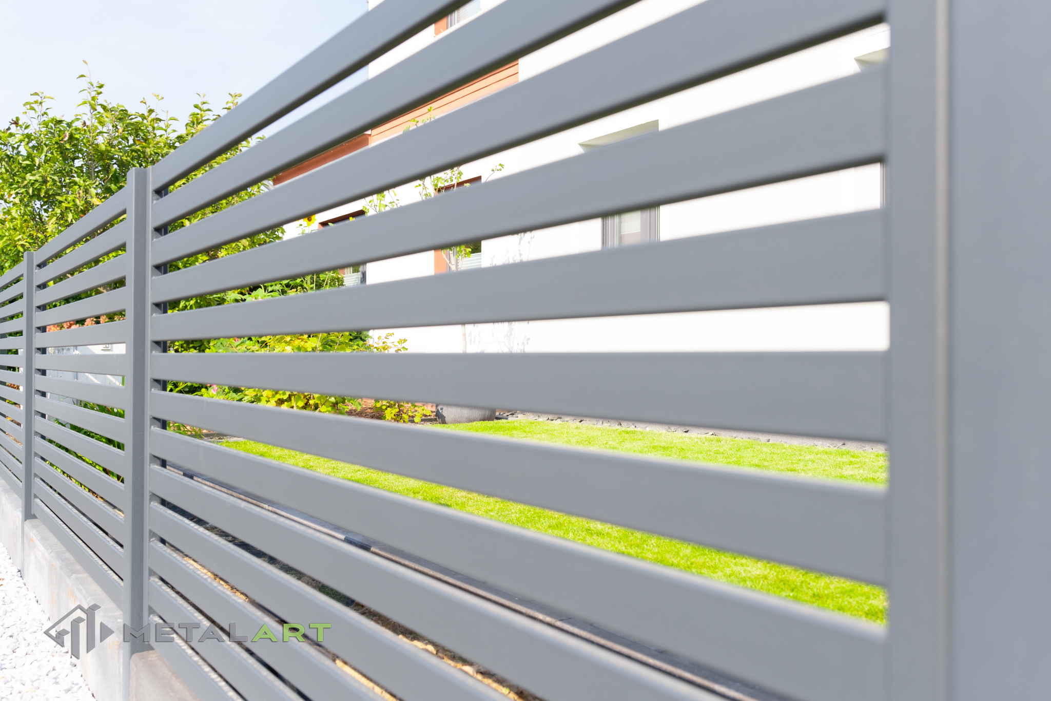 Dieses Zaunmodell harmoniert in seiner Grundform gut mit moderner Architektur. Es wird von Kunden gewählt, die Wert auf Einfachheit legen, den Raum deutlich hervorheben und die Sichtbarkeit begrenzen wollen.
