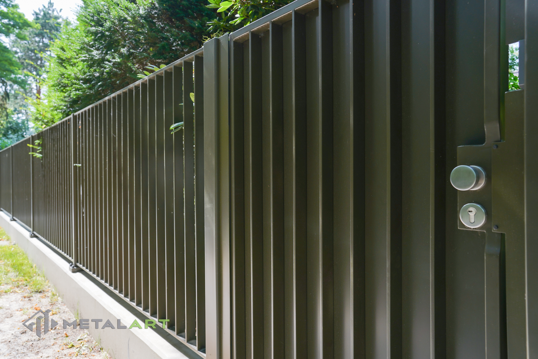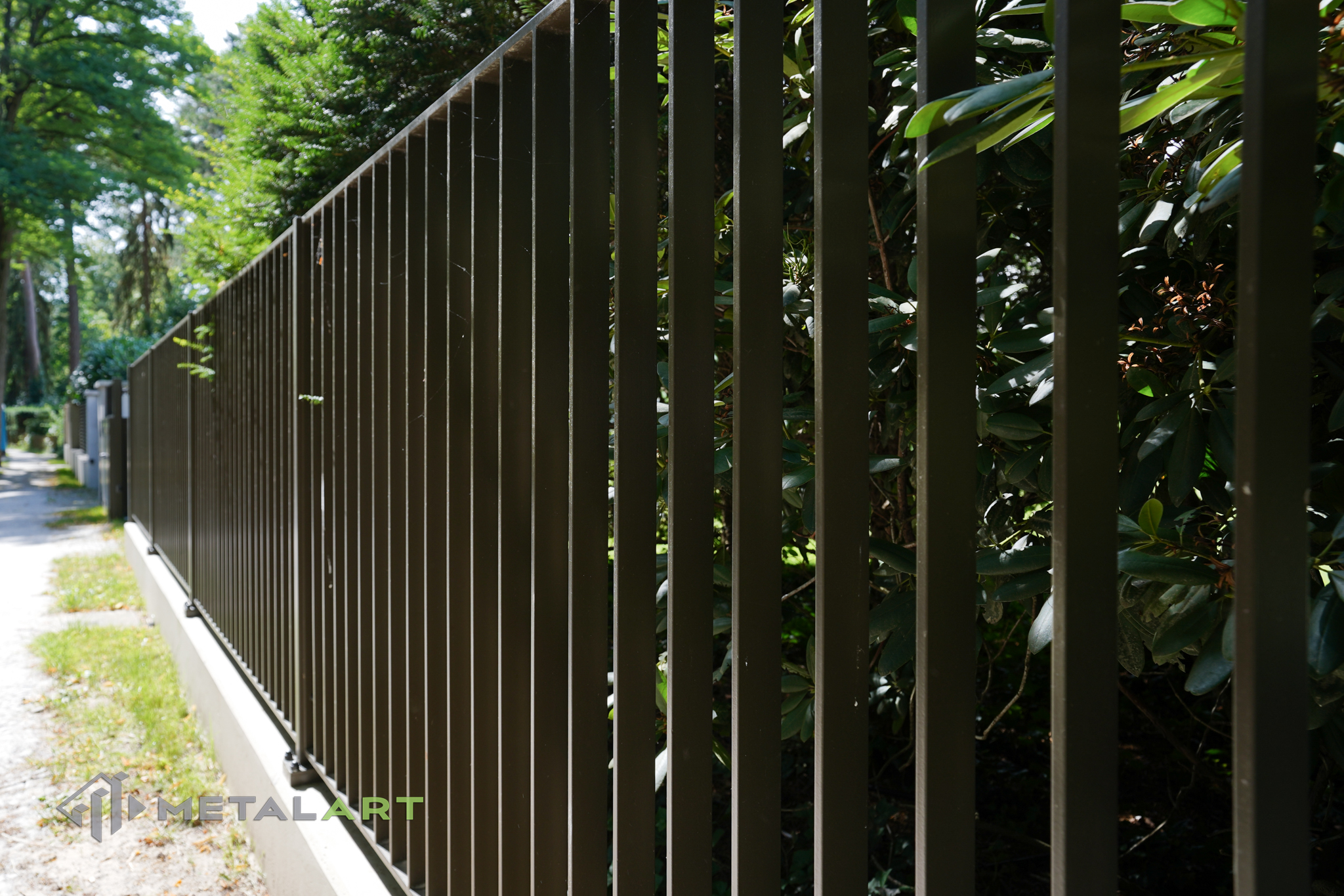 Dieses Zaunmodell harmoniert in seiner Grundform gut mit moderner Architektur. Es wird von Kunden gewählt, die Wert auf Einfachheit legen und den Raum deutlich hervorheben wollen. Die Größe, der Abstand und das Muster der Zaunfelder können frei bestimmt werden. Auch Farben, matt oder glänzend sind auf Anfrage erhältlich.