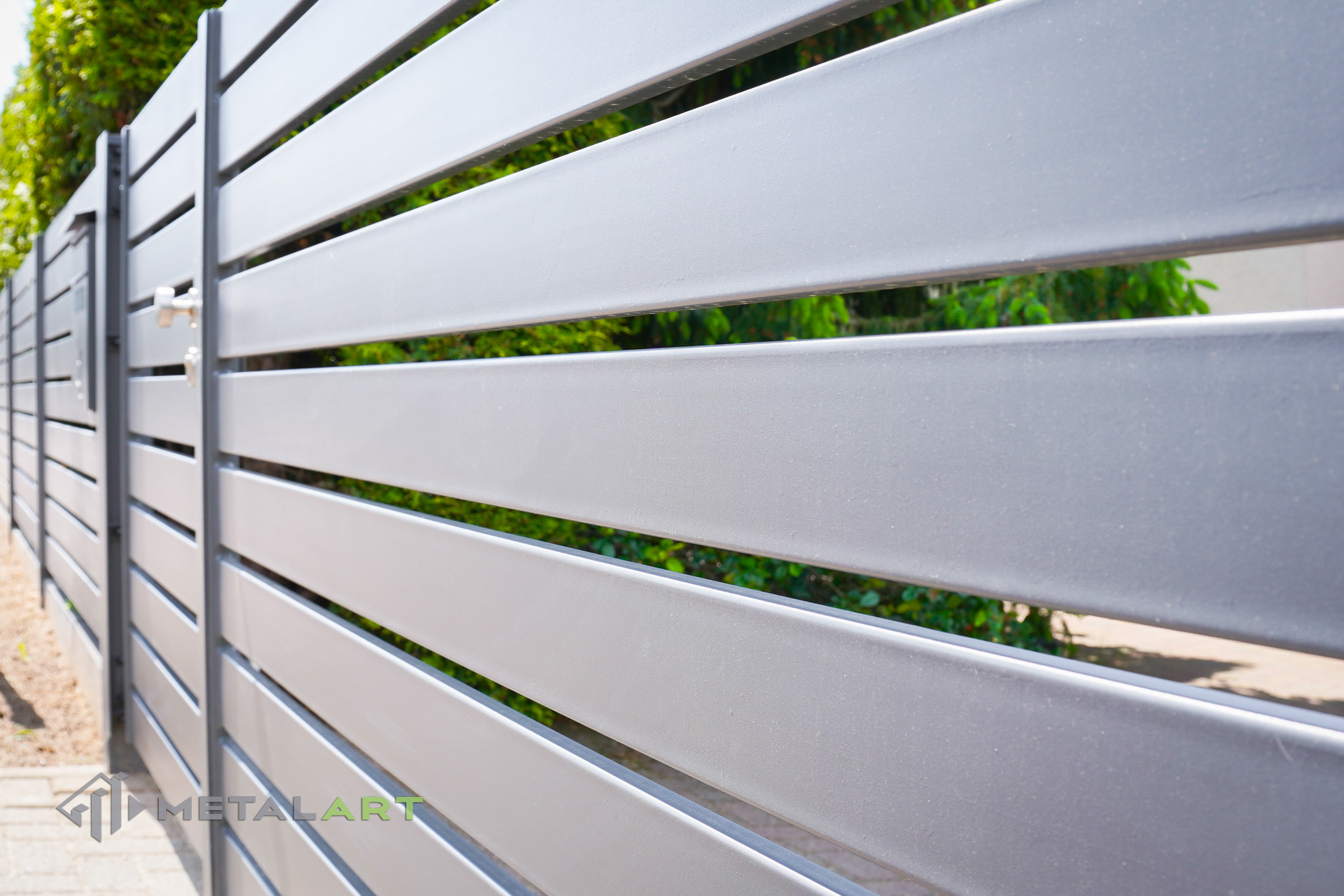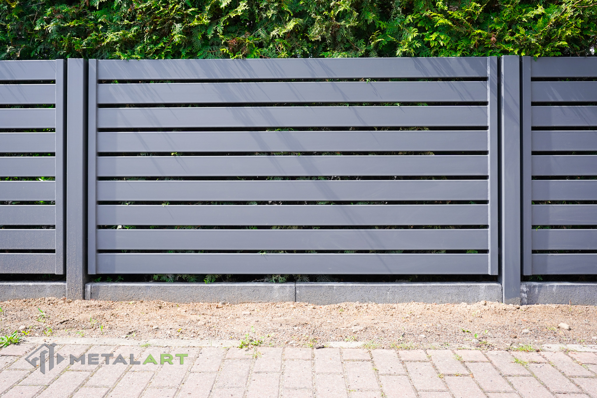 Beim Zaunmodell BASS können die Größe der Querprofile, und der Abstand dazwischen frei bestimmt werden. Auch Farben aus unterschiedlichen Farbpaletten wie RAL, DB, Antik oder Glimmer können je nach eigenem Geschmack beim Zaunmodell BASS ausgewählt werden.