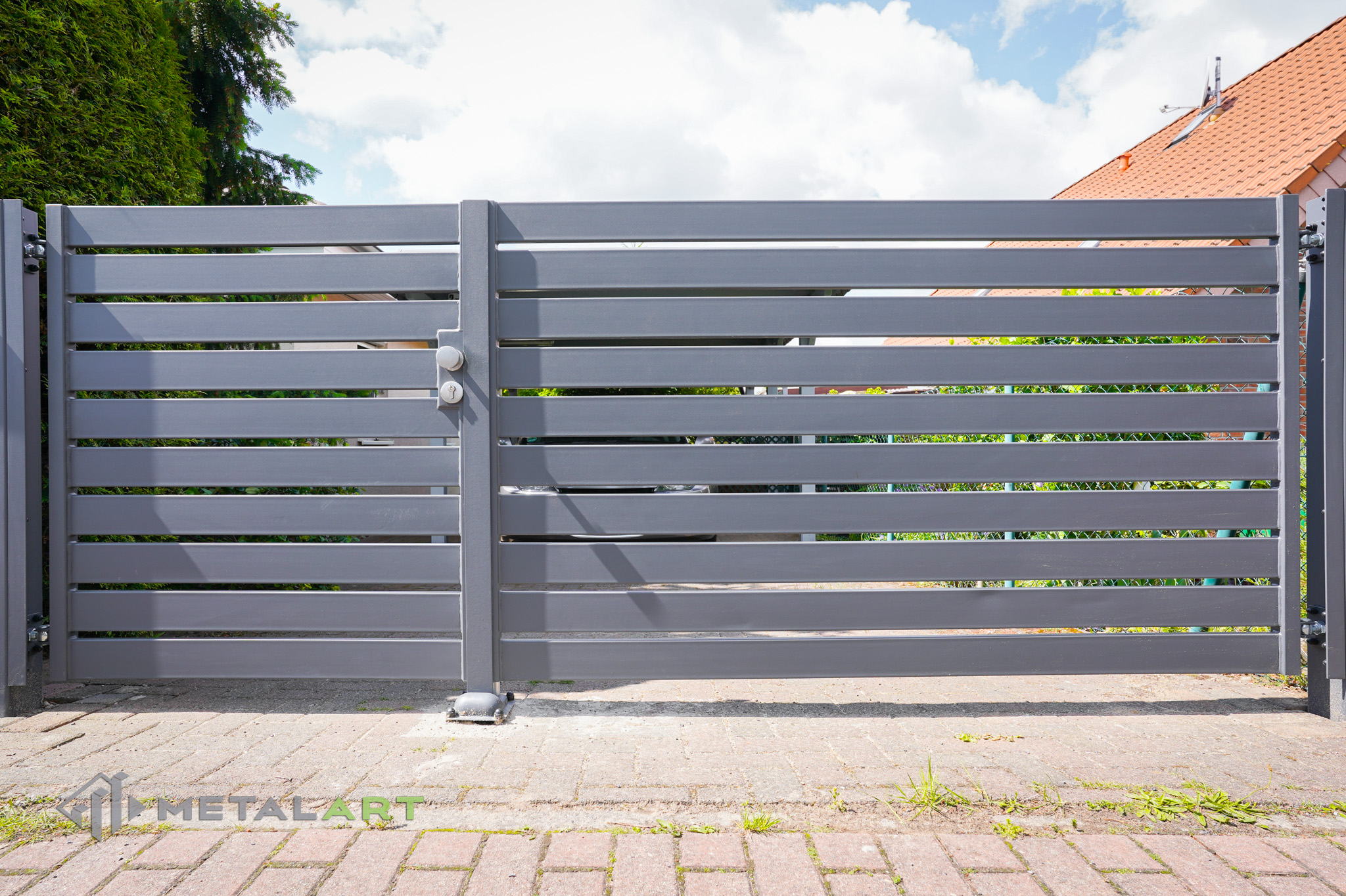 Bei der Gestaltung eines Doppelflügeltores kann man ebenfalls auf zahlreiche fertige Zaunmuster und Zaundekorationen zurückgreifen. Je nach Teilung der beiden Torflügel, kann man das symmetrische oder asymmetrische Doppelflügeltor an den Rest der Zaunanlage anpassen.