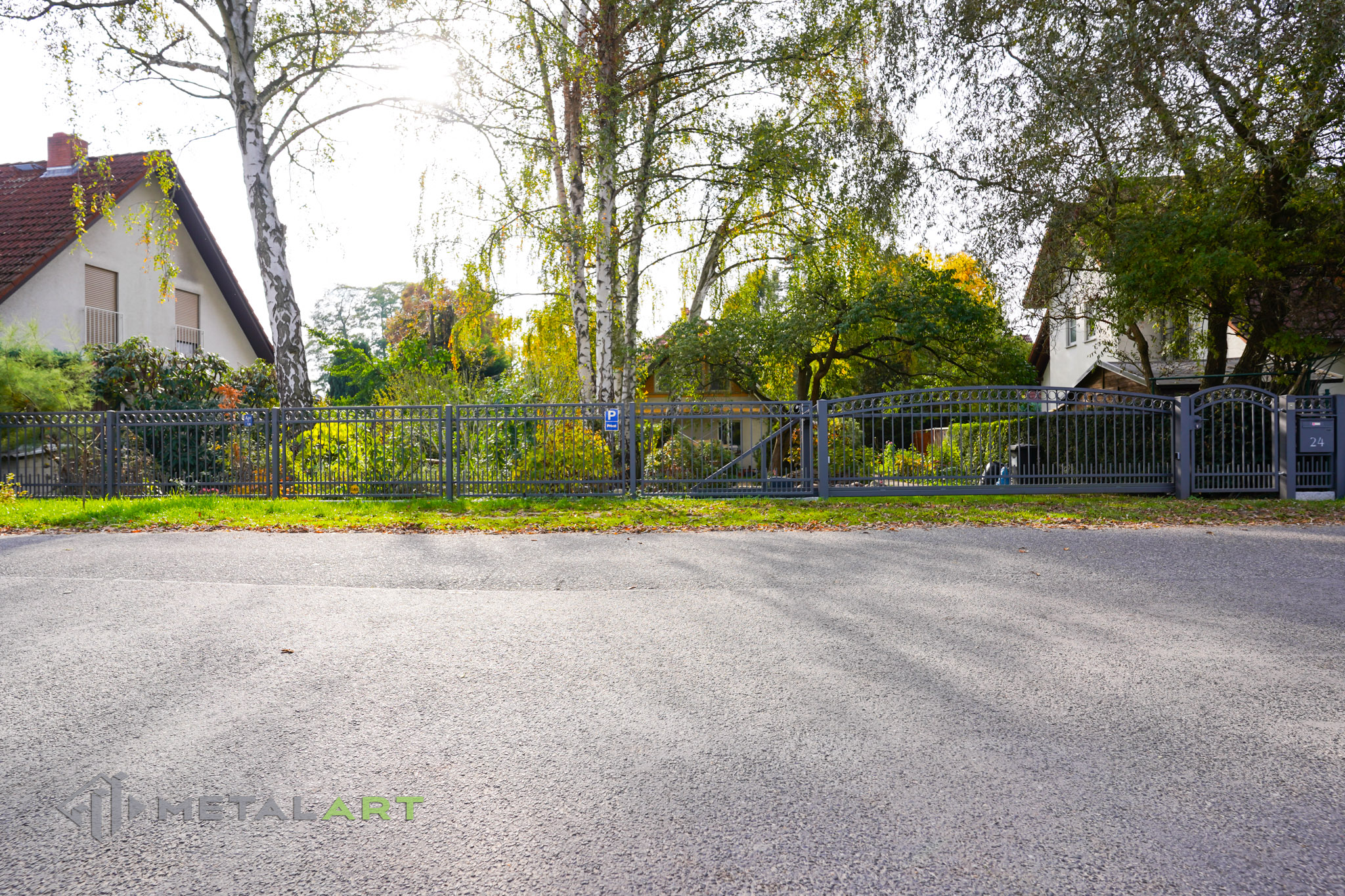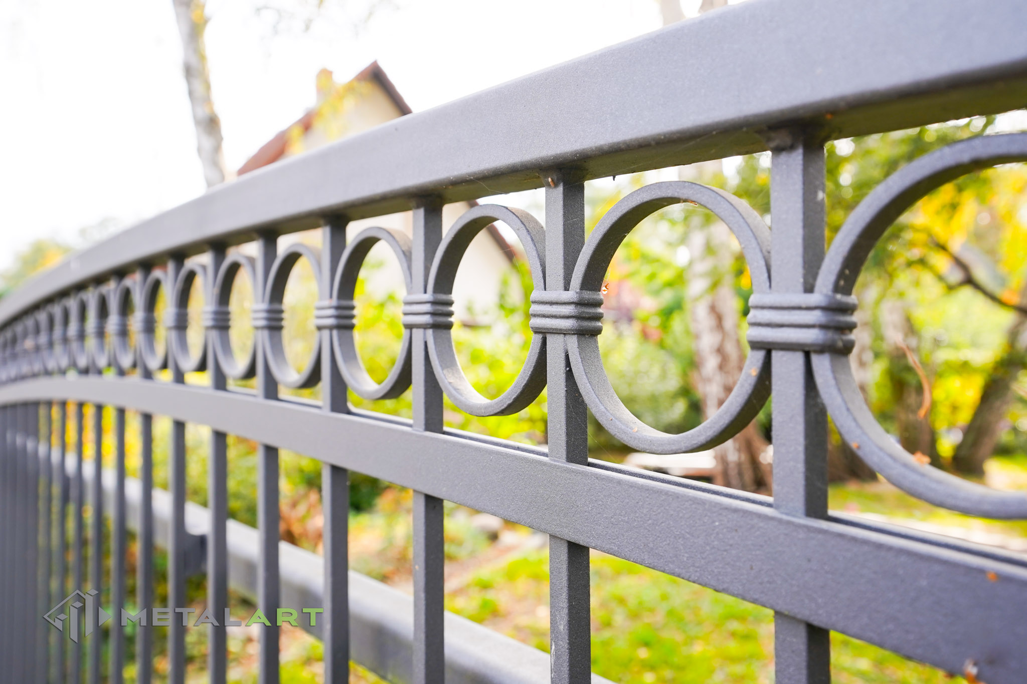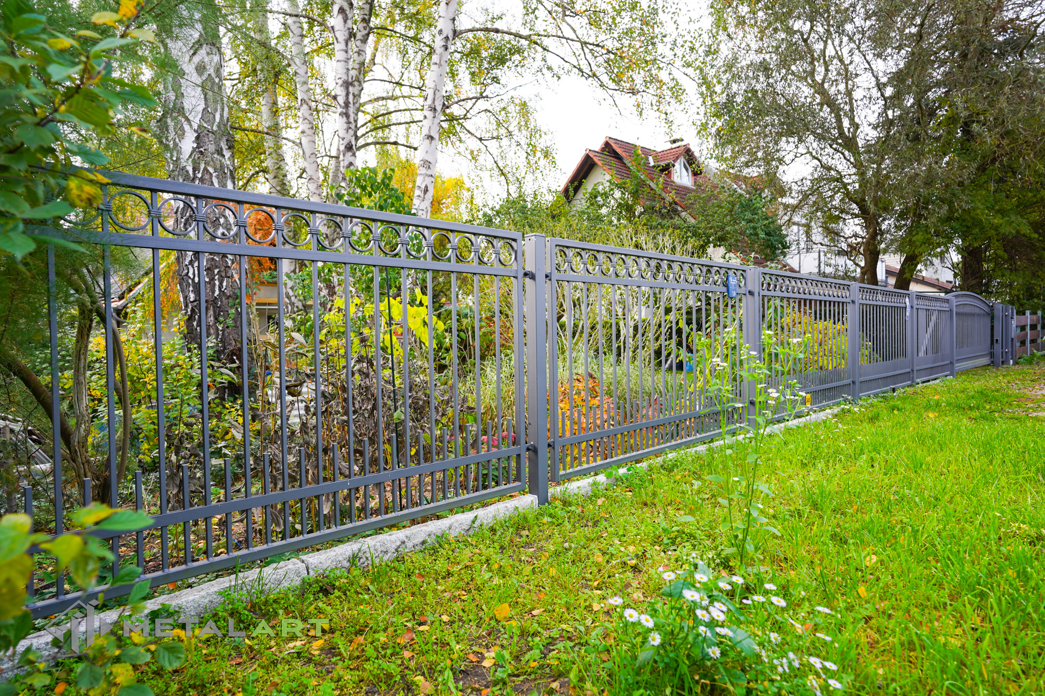 In diesem Projekt wurde der obere und untere Teil des Zauns dekoriert. Gerade Linien sind das dominierende Element, das das Zaunfeld verdickt, und das Ganze wird mit einem anmutigen Ornament auf der Oberseite abgeschlossen. Die Zaunkappen verleihen dem Zaun Erhabenheit und ordnen gleichzeitig die Vielzahl der hier verwendeten Ornamente. Ein wirklich schöner Zaun!
