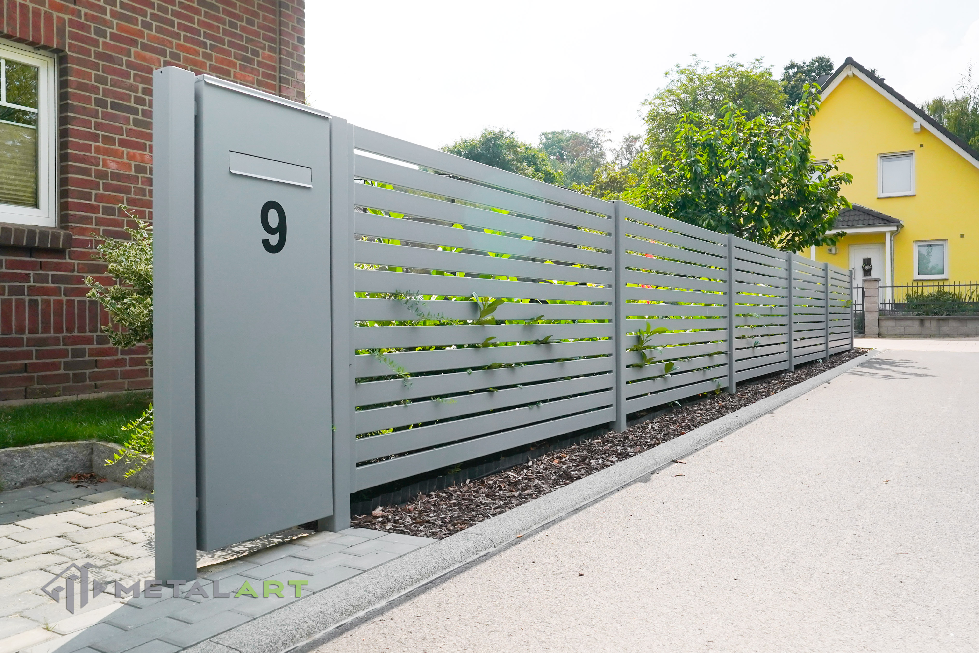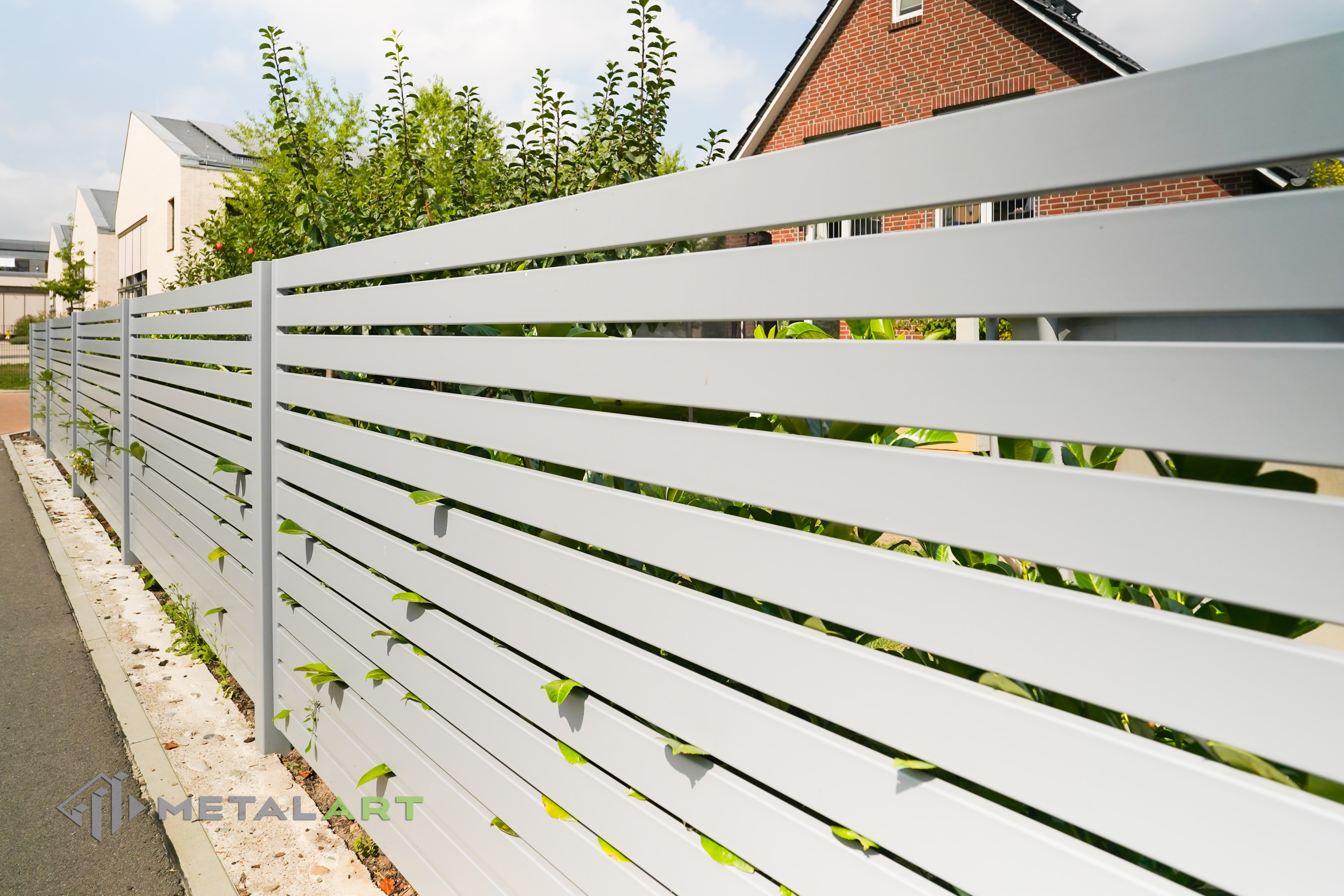 Die Größe, der Abstand und das Muster der Zaunfelder können frei bestimmt werden. Auch Farben, matt oder glänzend sind auf Anfrage erhältlich.