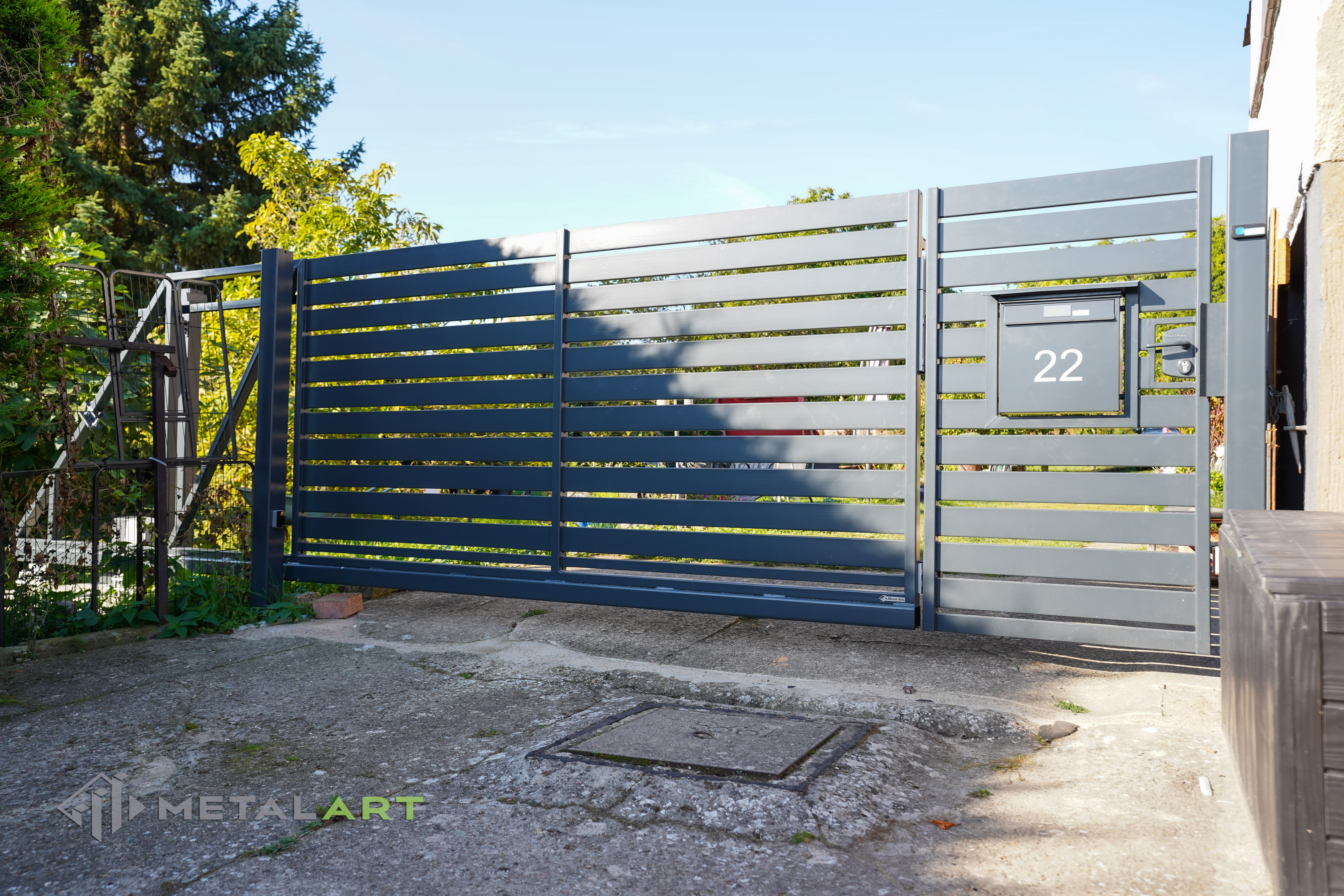Schiebetore mit integrierter Pforte, Zaunanlage Projekt, Zaun Metal Art