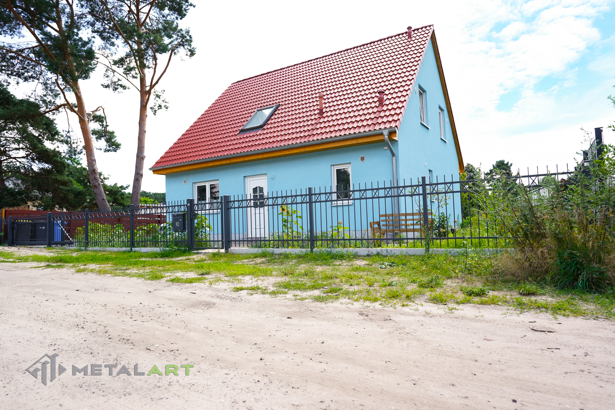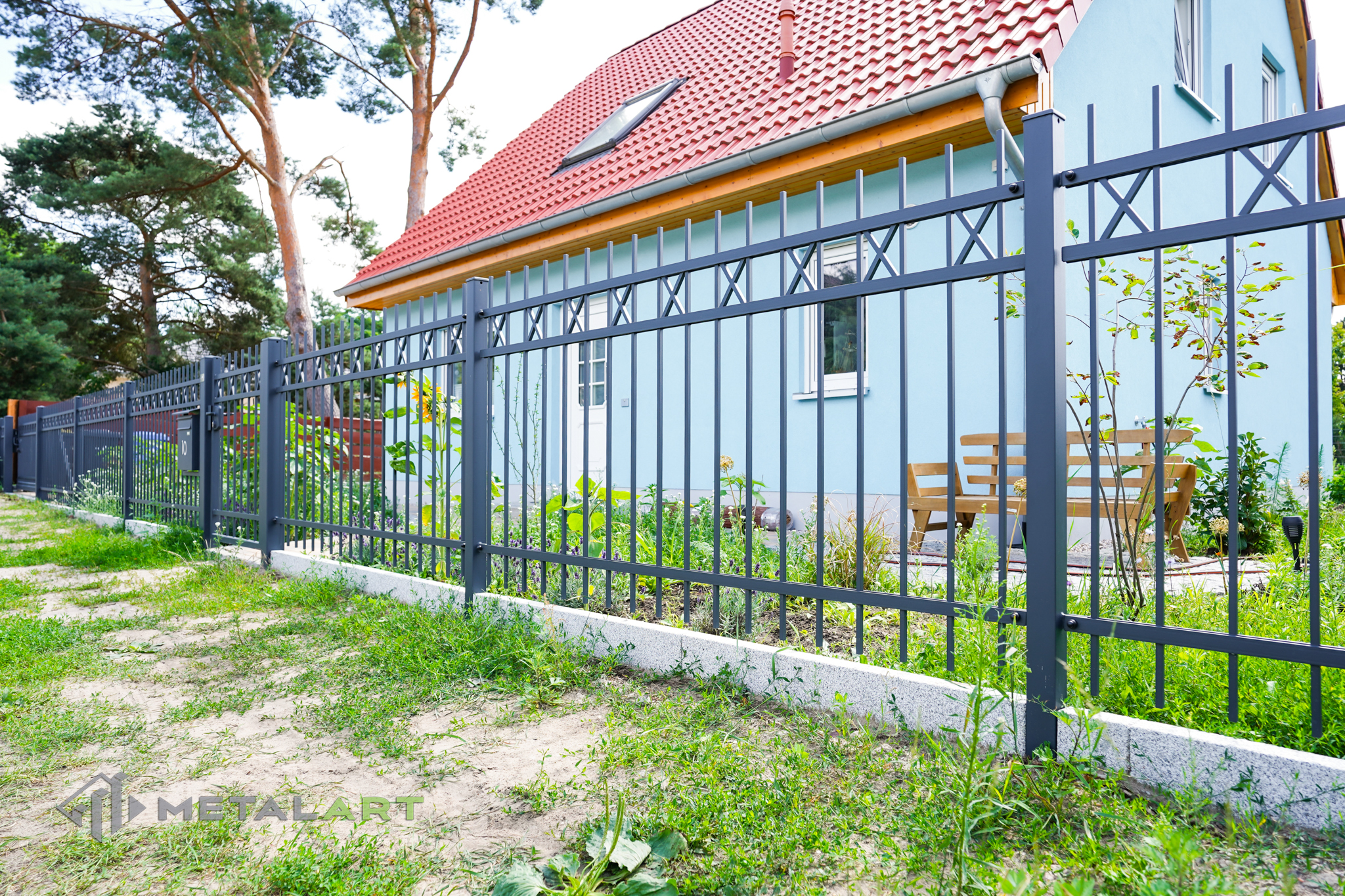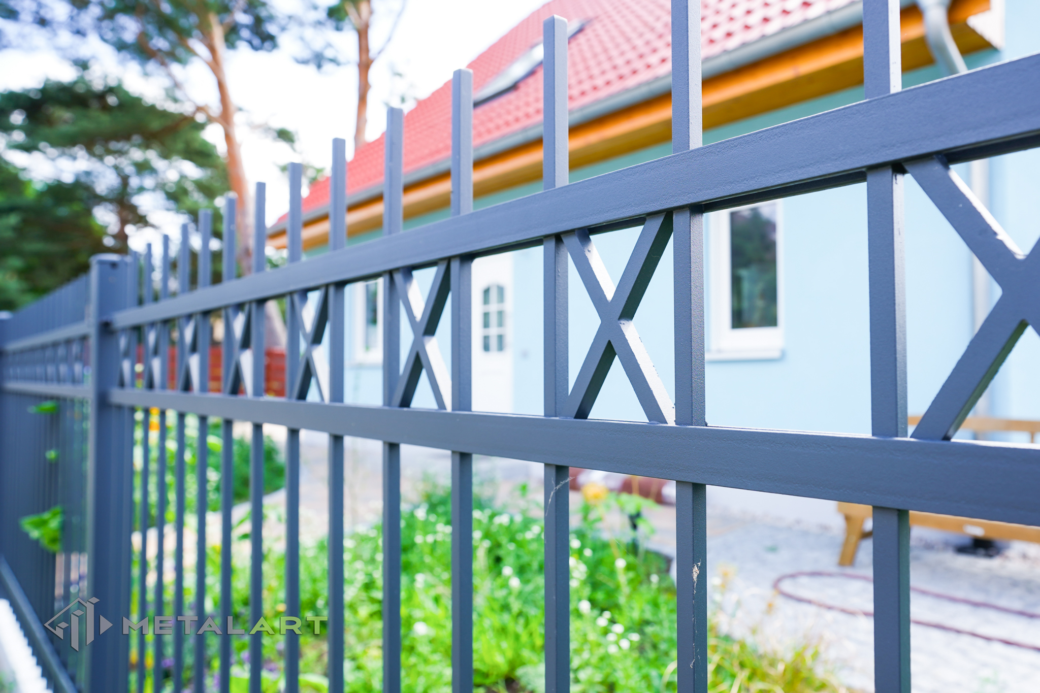 In diesem Projekt wurde der obere und untere Teil des Zauns dekoriert. Gerade Linien sind das dominierende Element, das das Zaunfeld verdickt, und das Ganze wird mit einem anmutigen Ornament auf der Oberseite abgeschlossen. Die Zaunkappen verleihen dem Zaun Erhabenheit und ordnen gleichzeitig die Vielzahl der hier verwendeten Ornamente. Ein wirklich schöner Zaun!