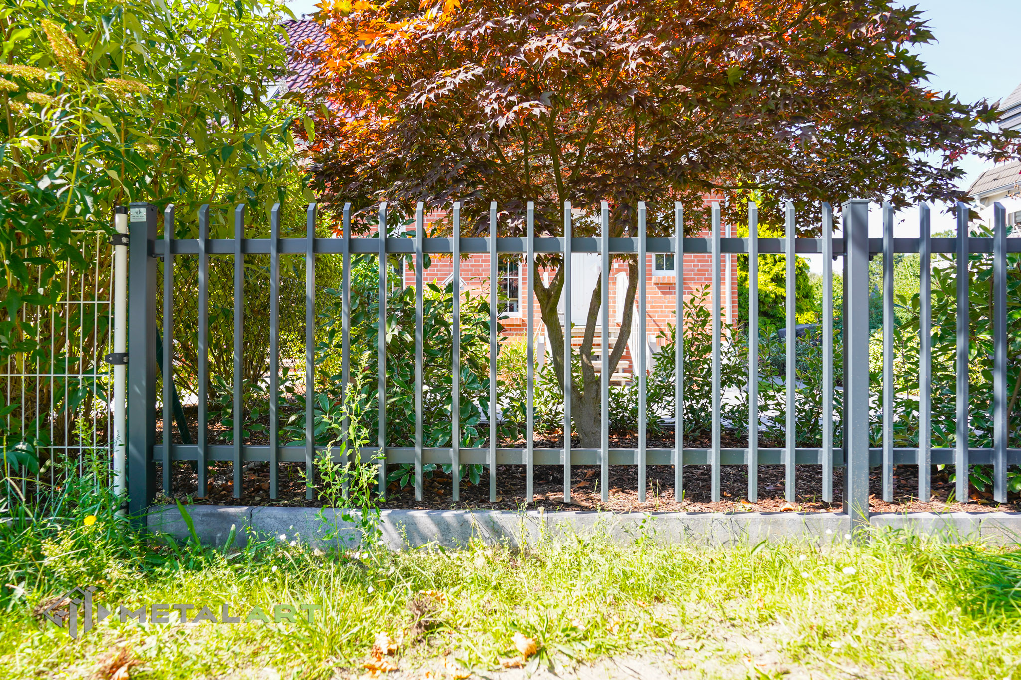 Ein scheinbar gewöhnlicher Zaun, doch dieses Design ist überraschend. Das Material spielt hier eine wichtige Rolle. Der Zaun sieht aus jeder Perspektive anders aus und spielt mit seiner Dreidimensionalität. Der Vorteil dieses Designs ist, dass es neutral bleibt und in viele architektonische Lösungen passt. Die Dicke der Zaunstäben und der Abstand zwischen ihnen, die Höhe und Breite können auf Ihre Bedürfnisse abgestimmt werden. Außerdem können die Zaunstäbe auf unterschiedliche Weise montiert werden.