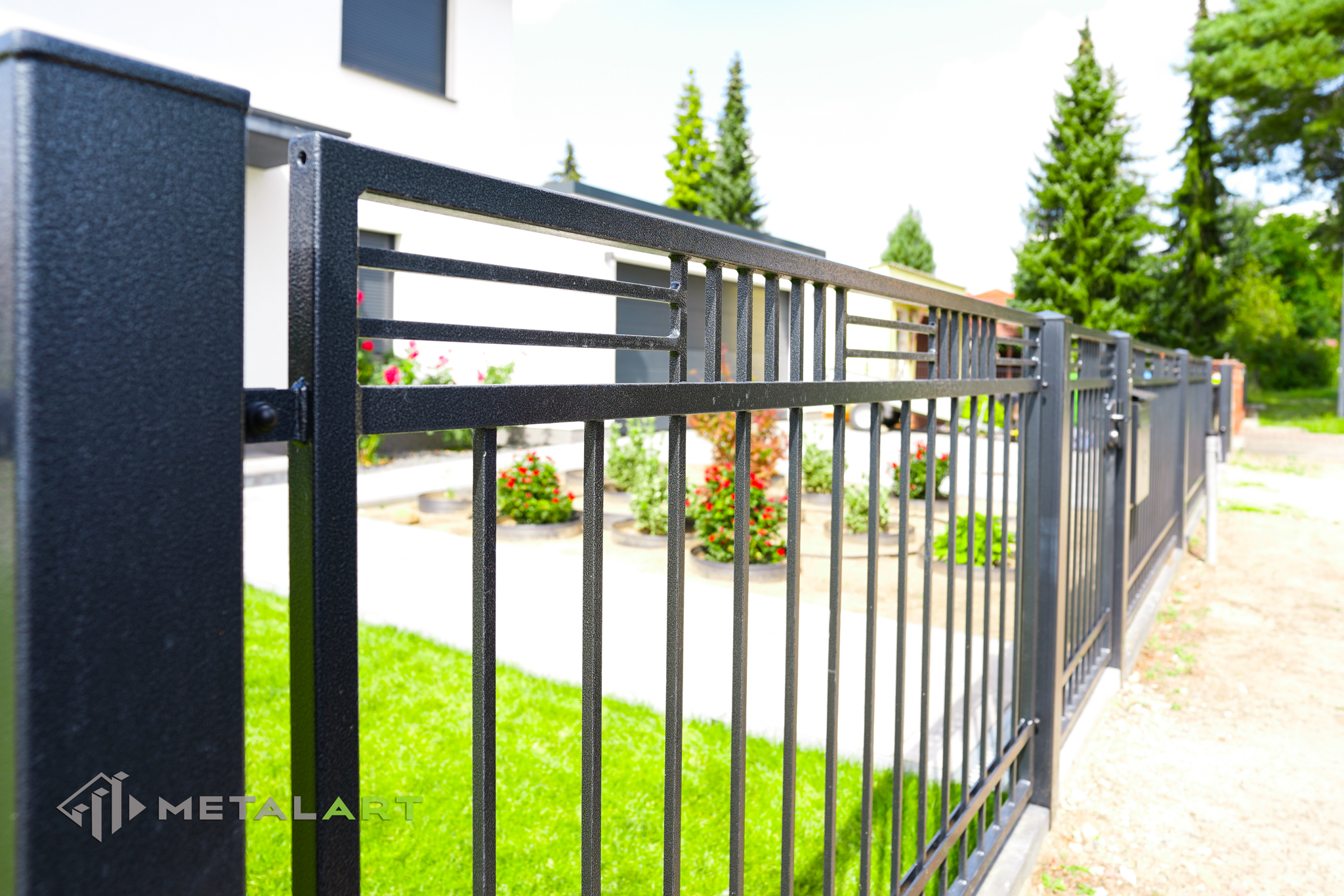 Dieser Zauntyp ist eine klassische und traditionelle Lösung, wenn wir uns die Grundkonstruktion ansehen. Sie lässt viel Licht herein und wirkt durch ihre schlanken Zaunstäbe leicht, dezent und filigran.