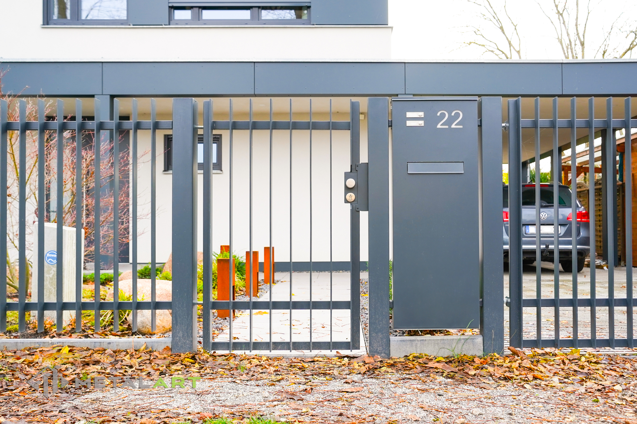 Dieser Zaun hat den Vorteil, dass er einen neutralen Charakter beibehält und in viele architektonische Lösungen passt. Dabei bleibt dieses Design immer edel in seinem Stil. Der Zaun spielt mit seiner Dreidimensionalität und unterstreicht so seinen einzigartigen Charakter.