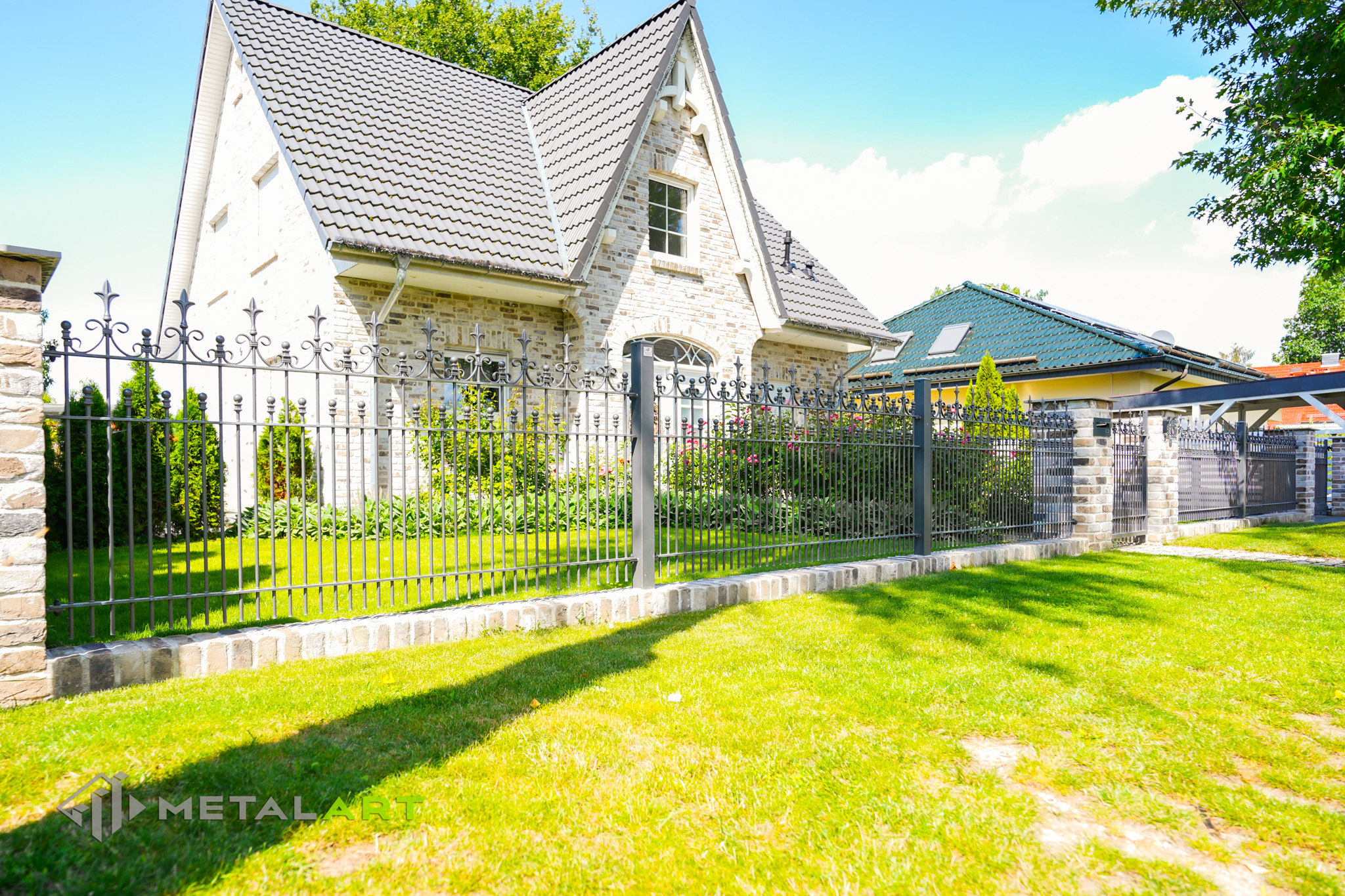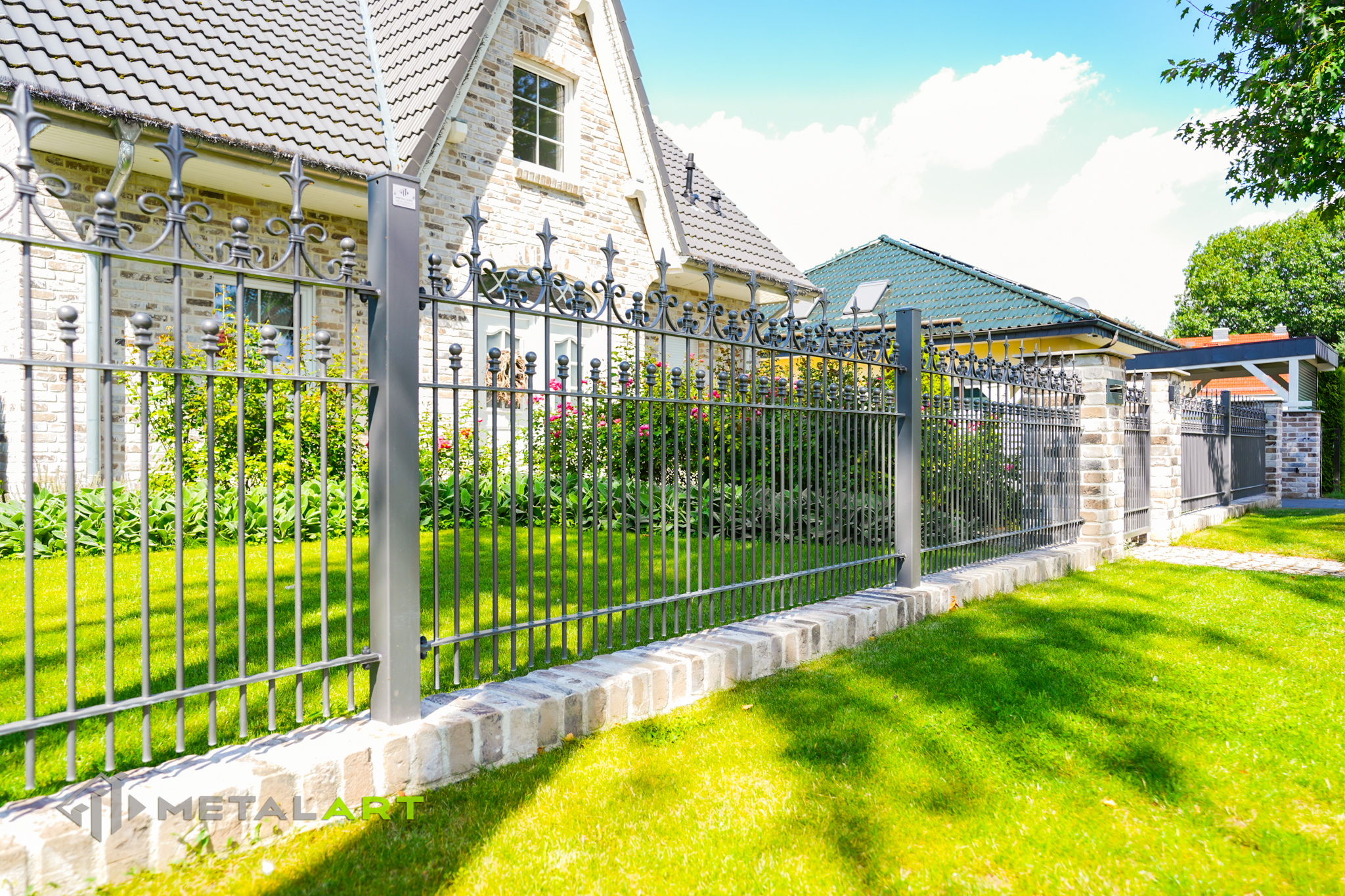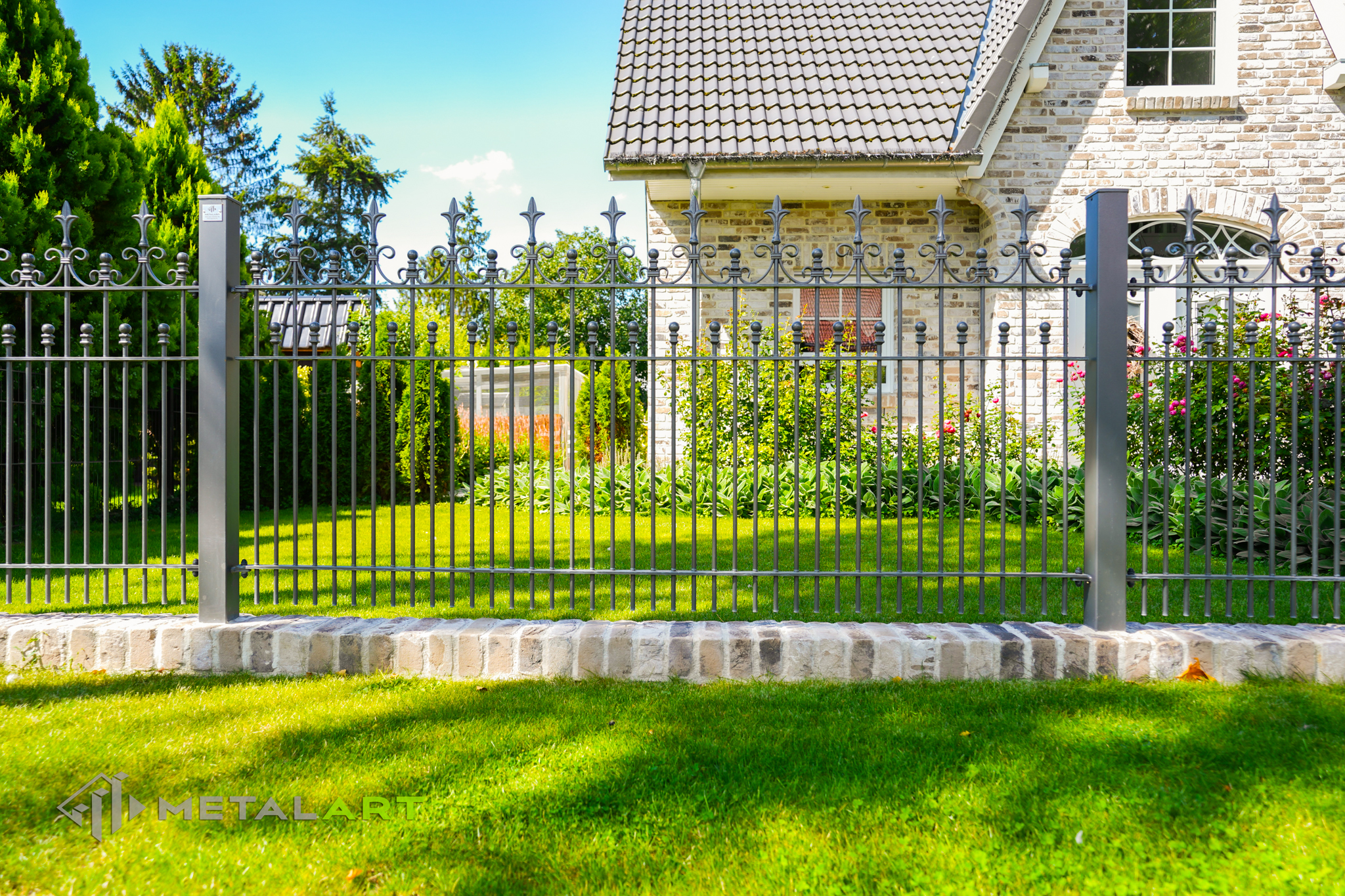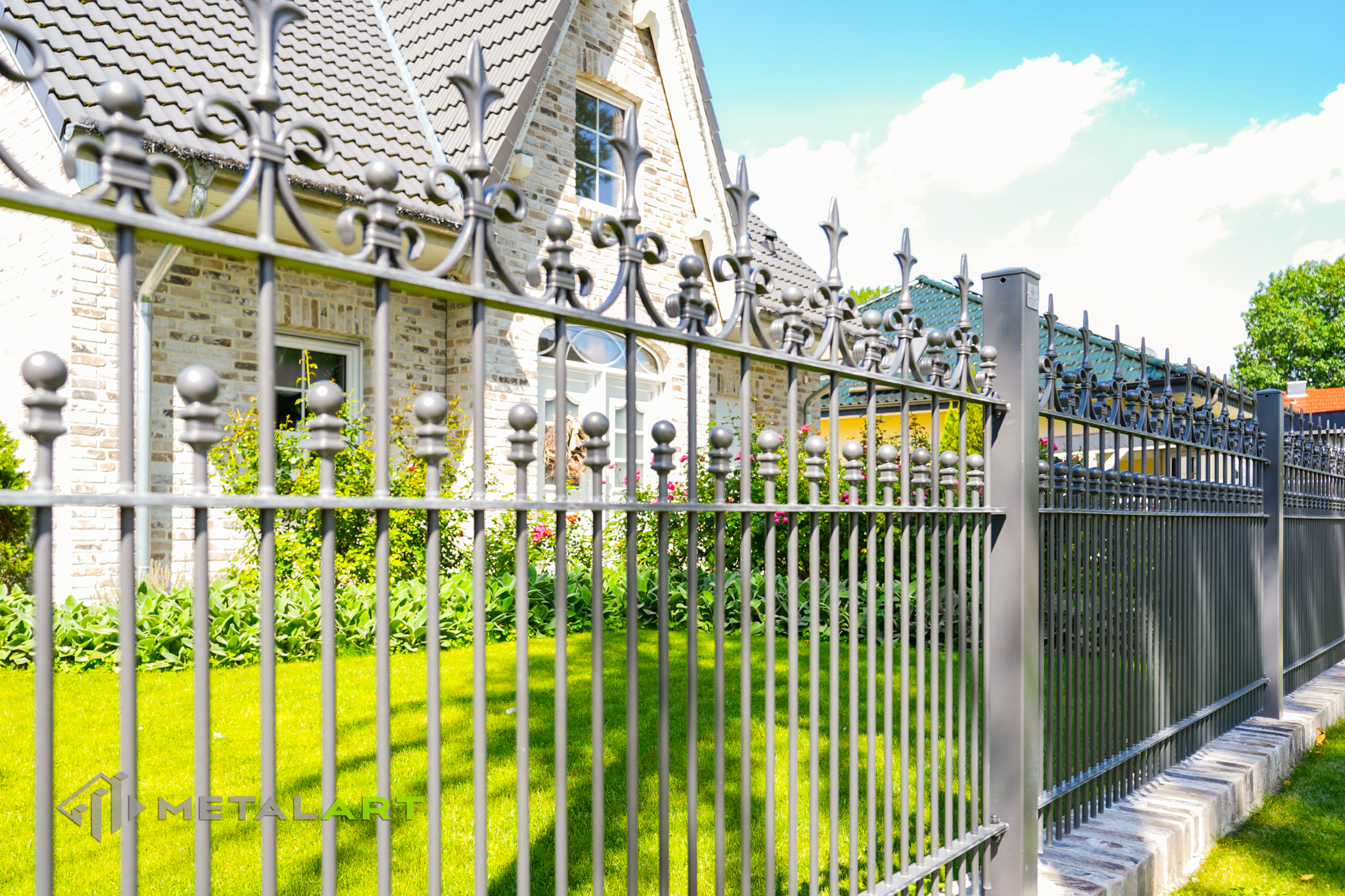 Die Zaunspitzen haben nicht nur eine Schutzfunktion, sondern sind auch eine Möglichkeit, interessante ornamentale Lösungen anzuwenden. In diesem Fall wurden Kugeln in die Spitzen eingelassen.