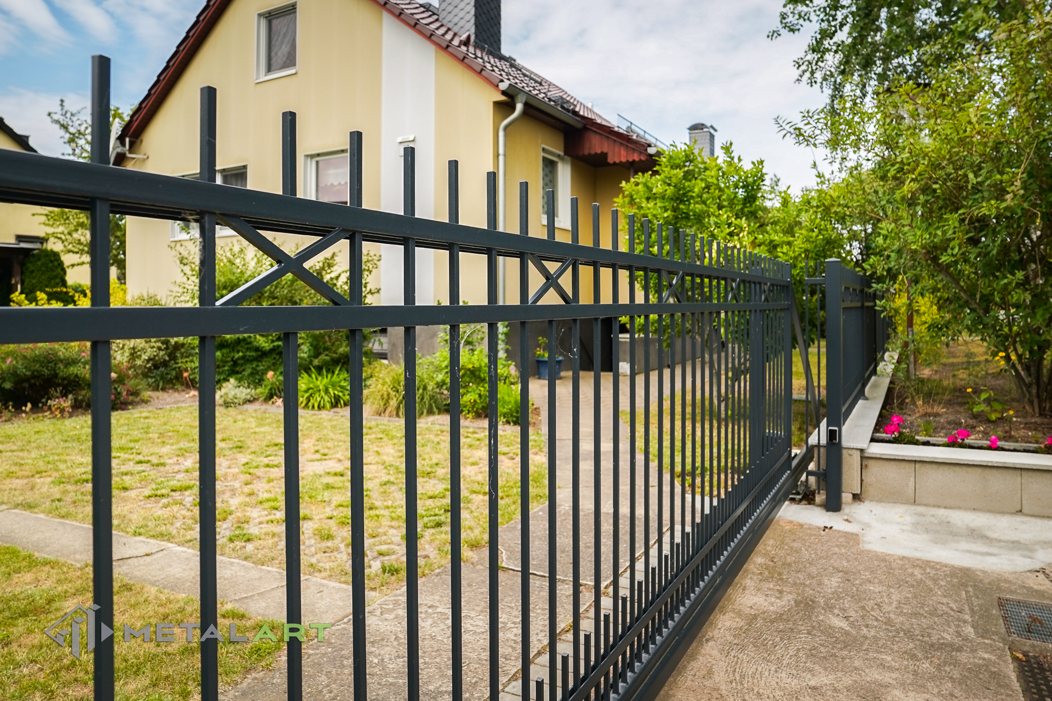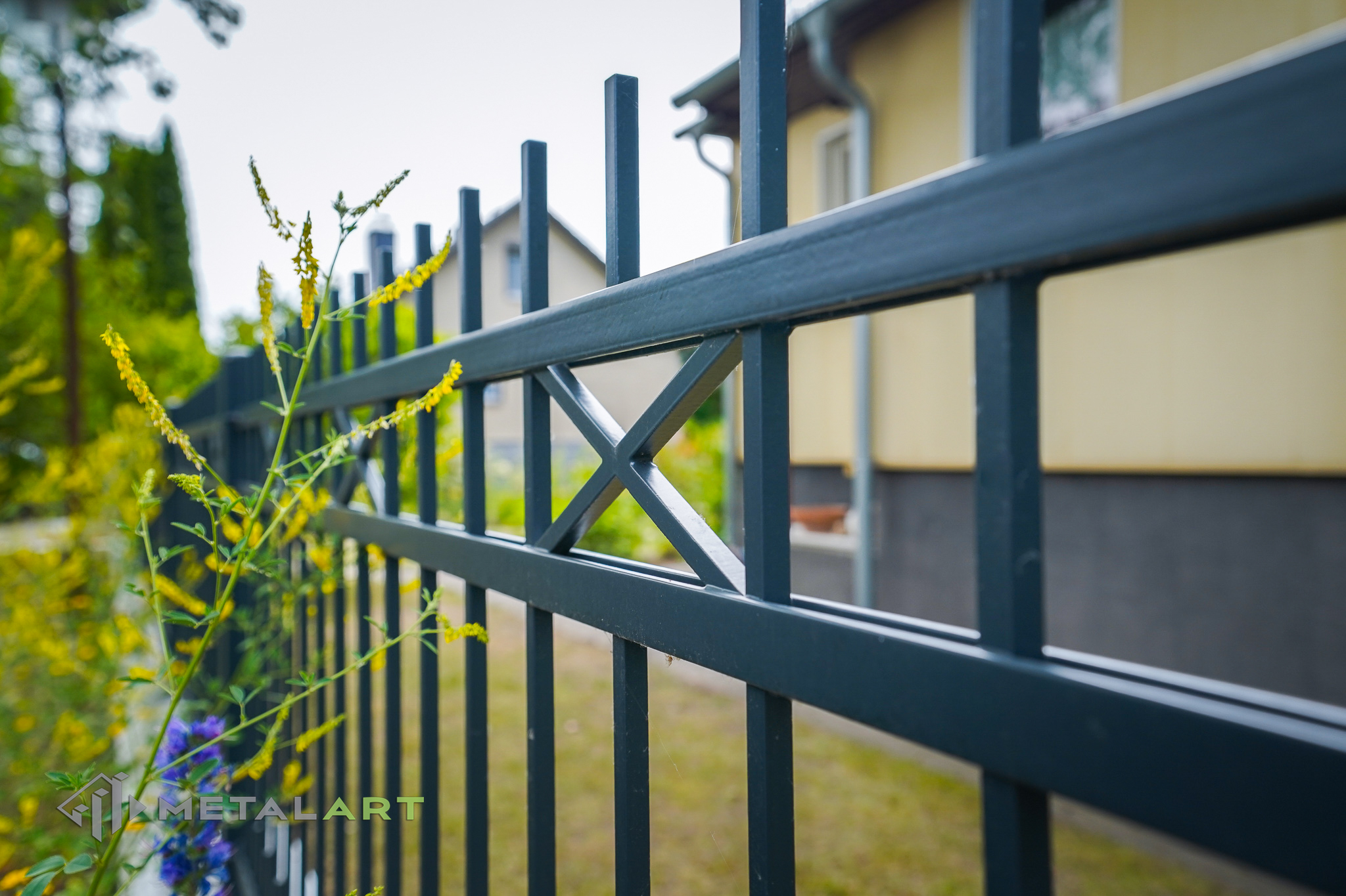 In diesem Projekt wurde der obere und untere Teil des Zauns dekoriert. Gerade Linien sind das dominierende Element, das das Zaunfeld verdickt, und das Ganze wird mit einem anmutigen Ornament auf der Oberseite abgeschlossen. Die Zaunkappen verleihen dem Zaun Erhabenheit und ordnen gleichzeitig die Vielzahl der hier verwendeten Ornamente. Ein wirklich schöner Zaun!