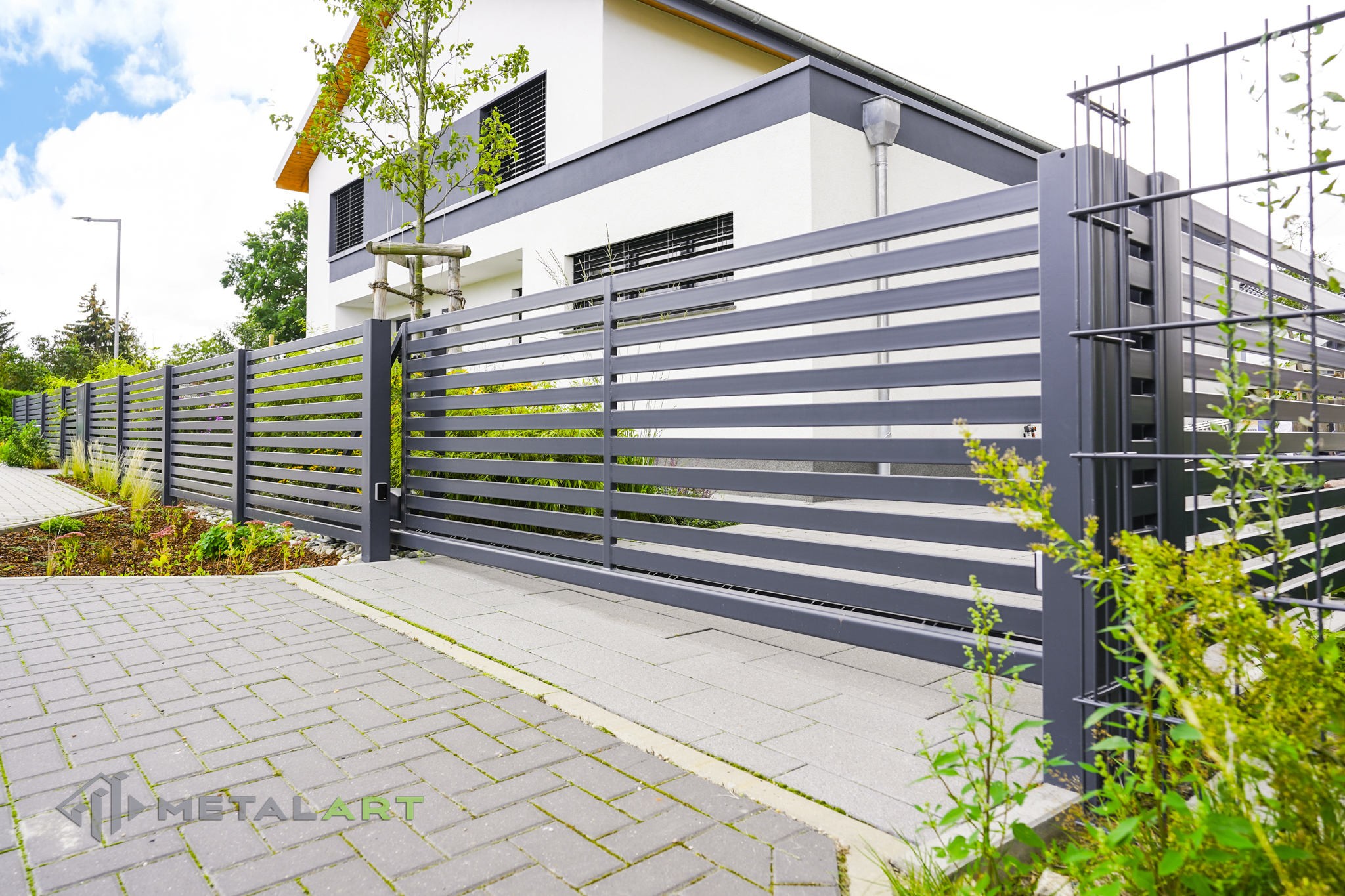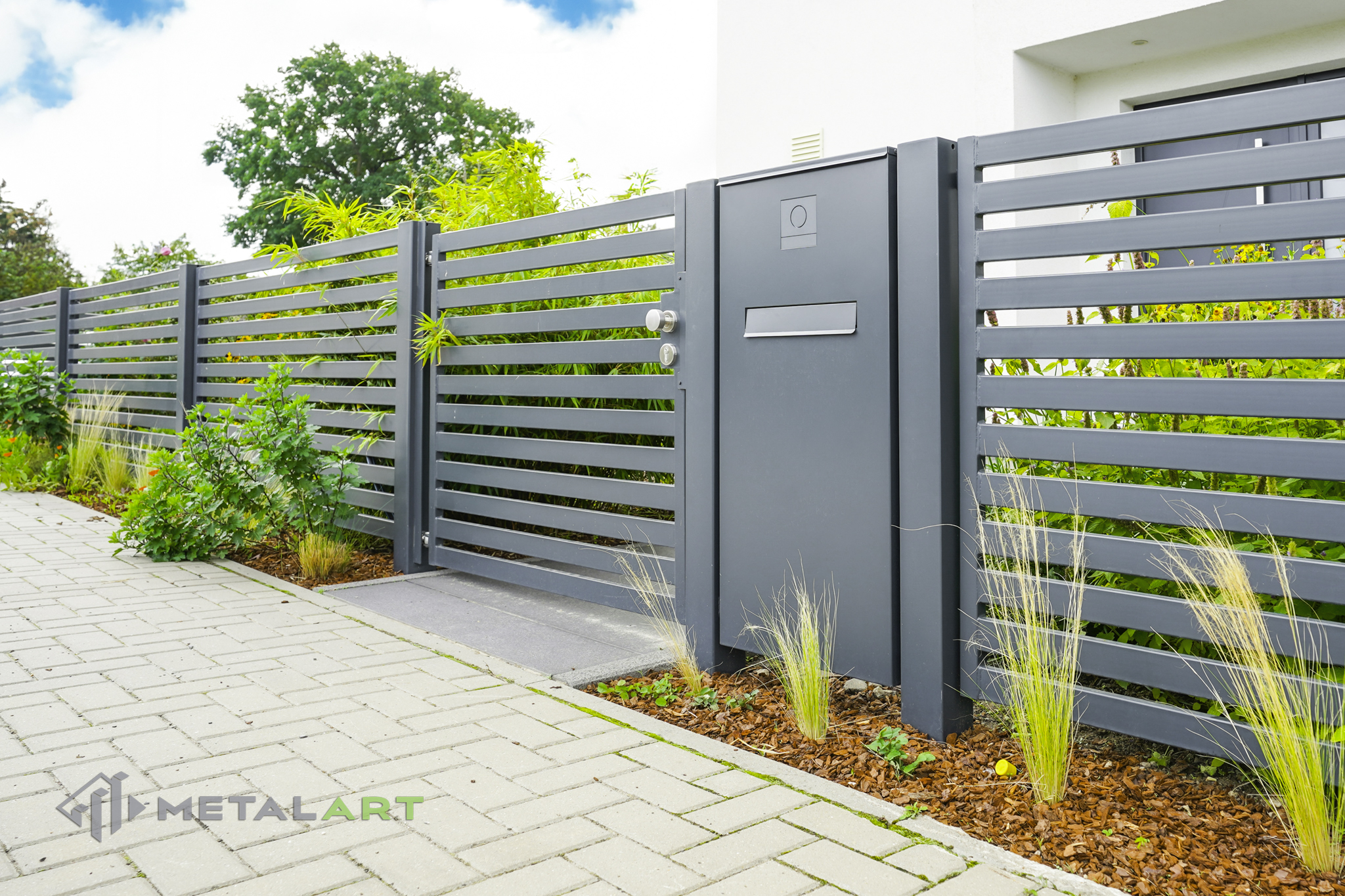 Dieses Zaunmodell harmoniert in seiner Grundform gut mit moderner Architektur. Es wird von Kunden gewählt, die Wert auf Einfachheit legen, den Raum deutlich hervorheben und die Sichtbarkeit begrenzen wollen.
