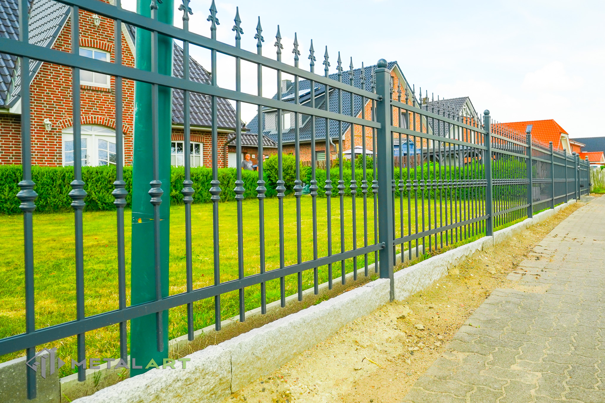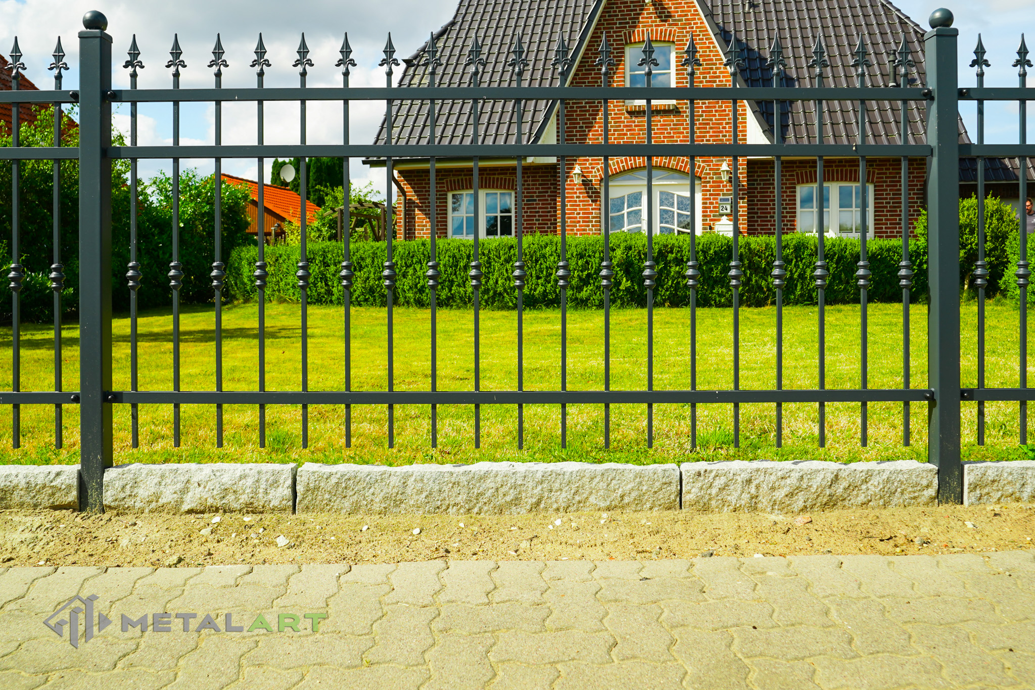 In der Regel kann das Ornament oben, in der Mitte und unten am Zaun angebracht werden. Wie groß und für welches Muster Sie sich auswählen, bleibt Ihnen überlassen. In diesem Fall entschied sich der Kunde für ein kleines geometrisches Element, das obwohl es klein ist, bei Wiederholung den Charakter des Zauns völlig verändert.
