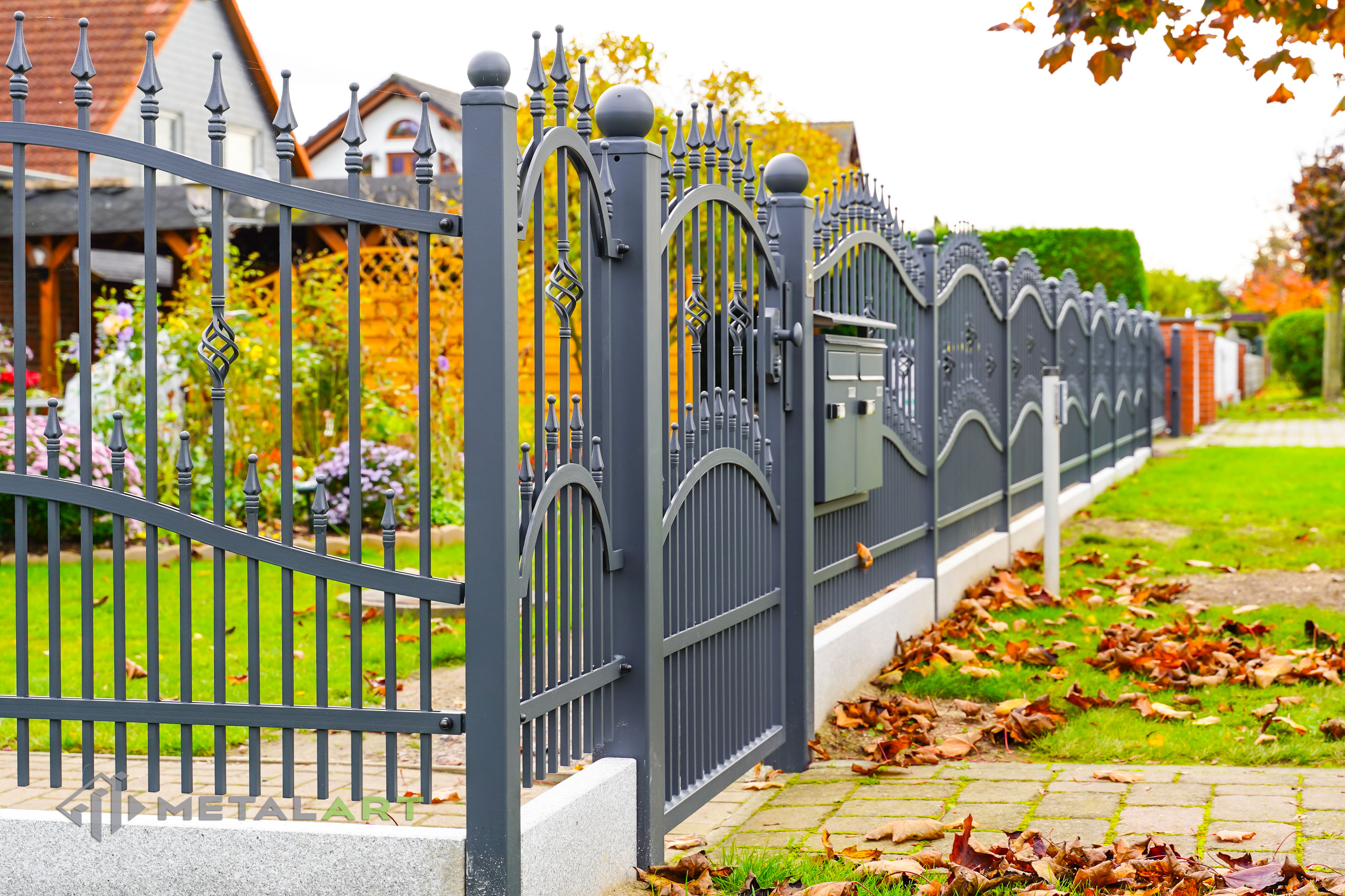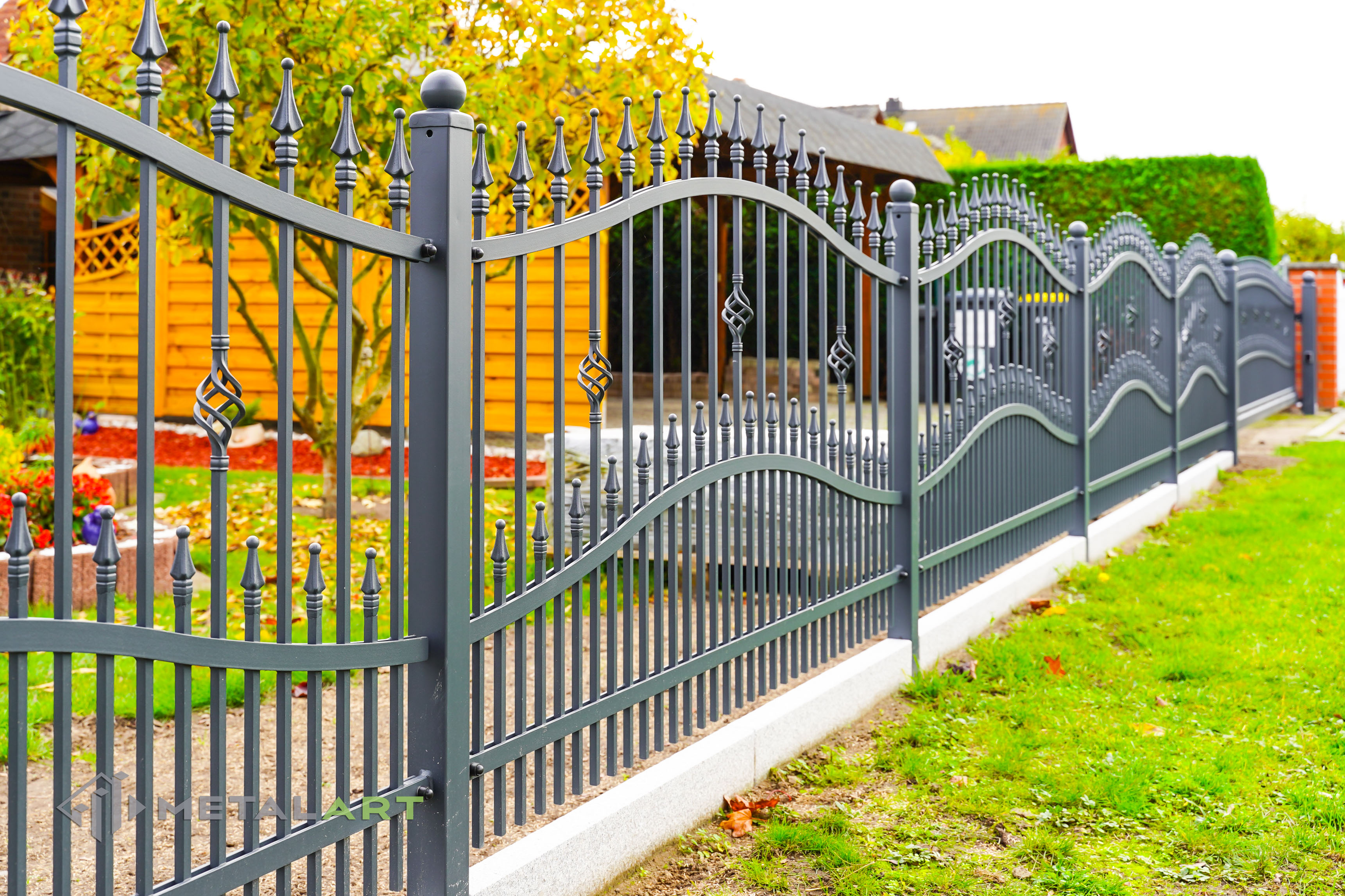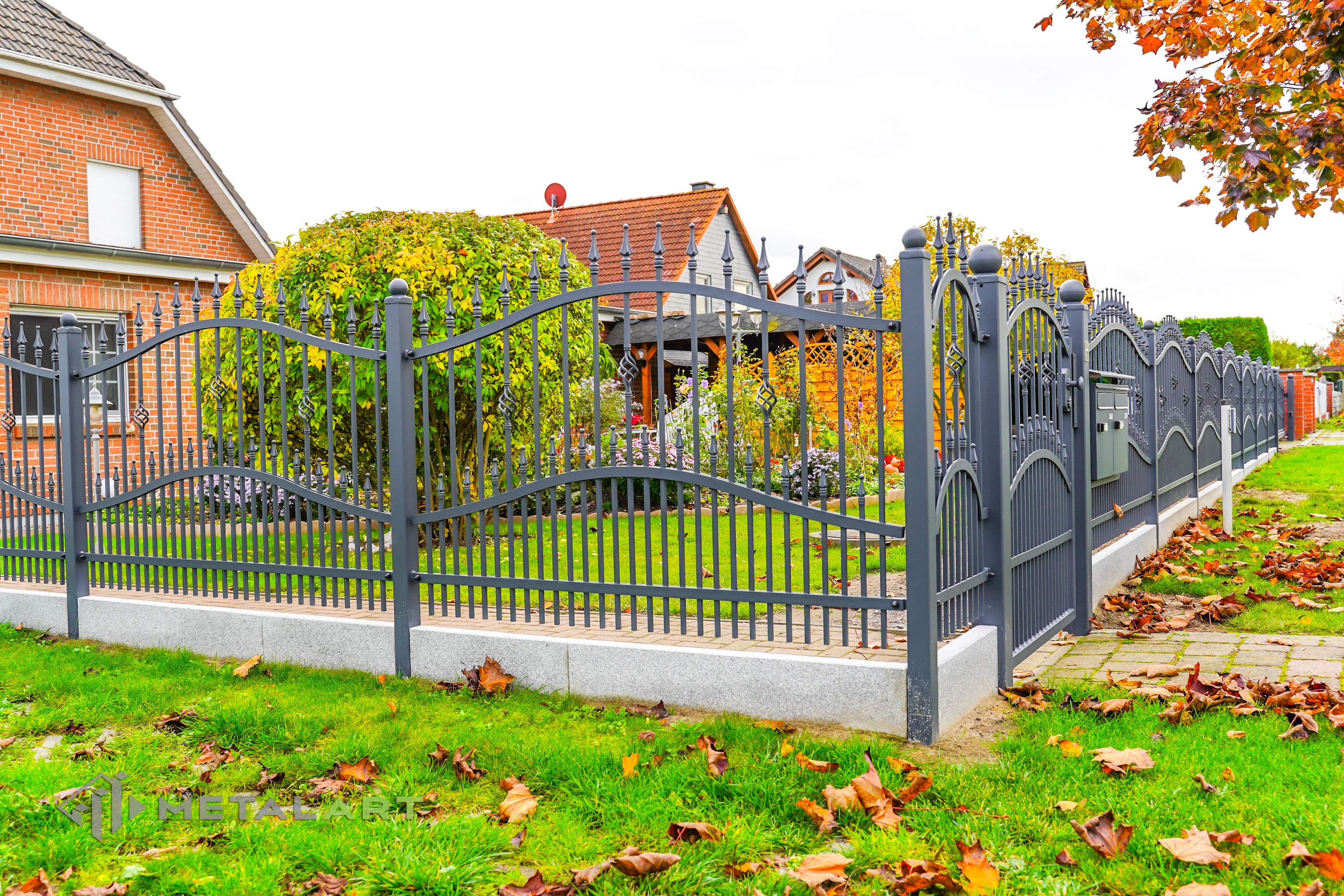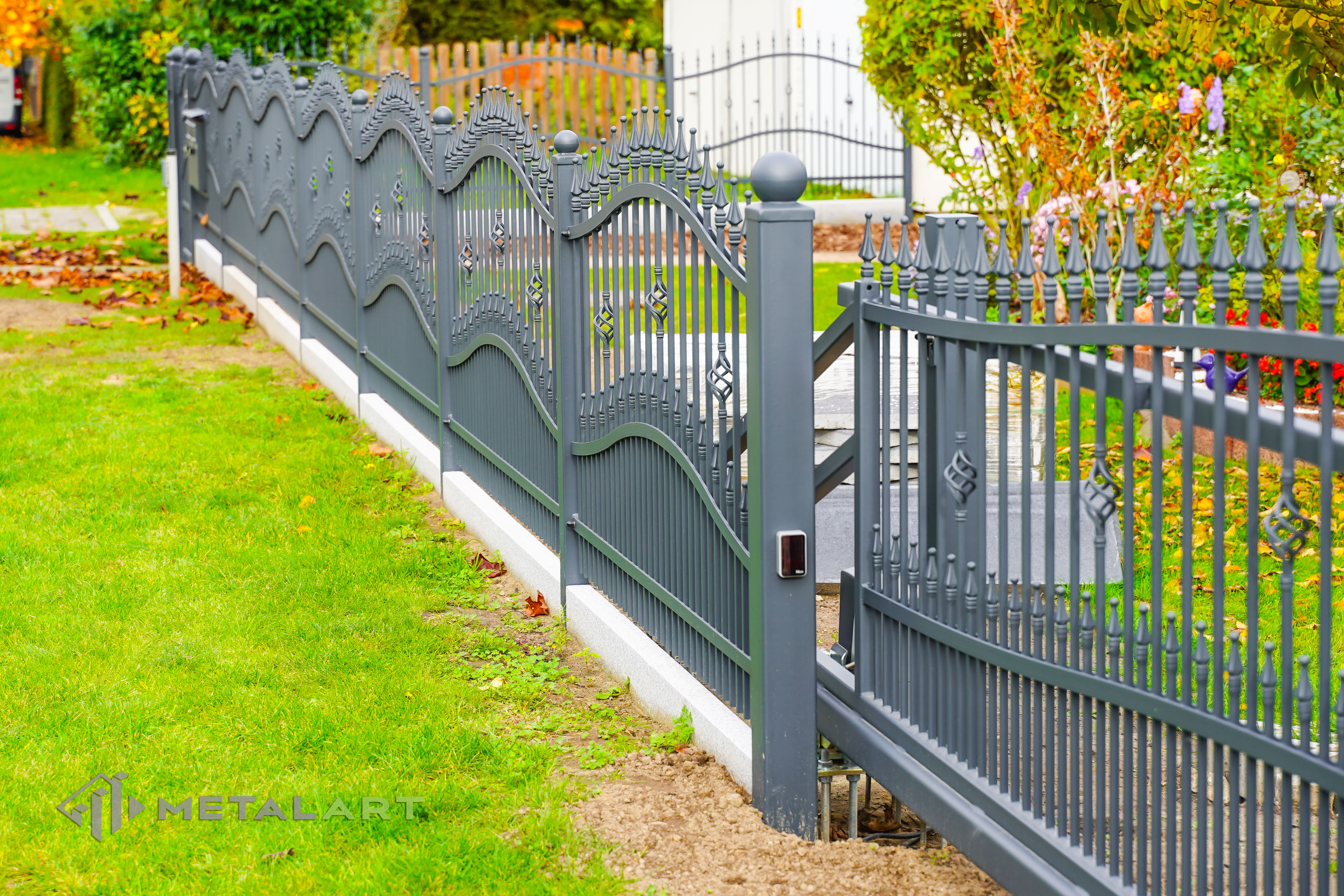 Die Zaunspitzen haben nicht nur eine Schutzfunktion, sondern sind auch eine Möglichkeit, interessante dekorative Lösungen anzuwenden. In diesem Fall wurden geometrische Formen mit kleinen Kugeln in die Zaunspitzen eingesetzt. Diese Kombination bewirkt, dass der obere Teil des Zauns deutlich hervorgehoben wird, aber auch ein Element der Zartheit aufweist.