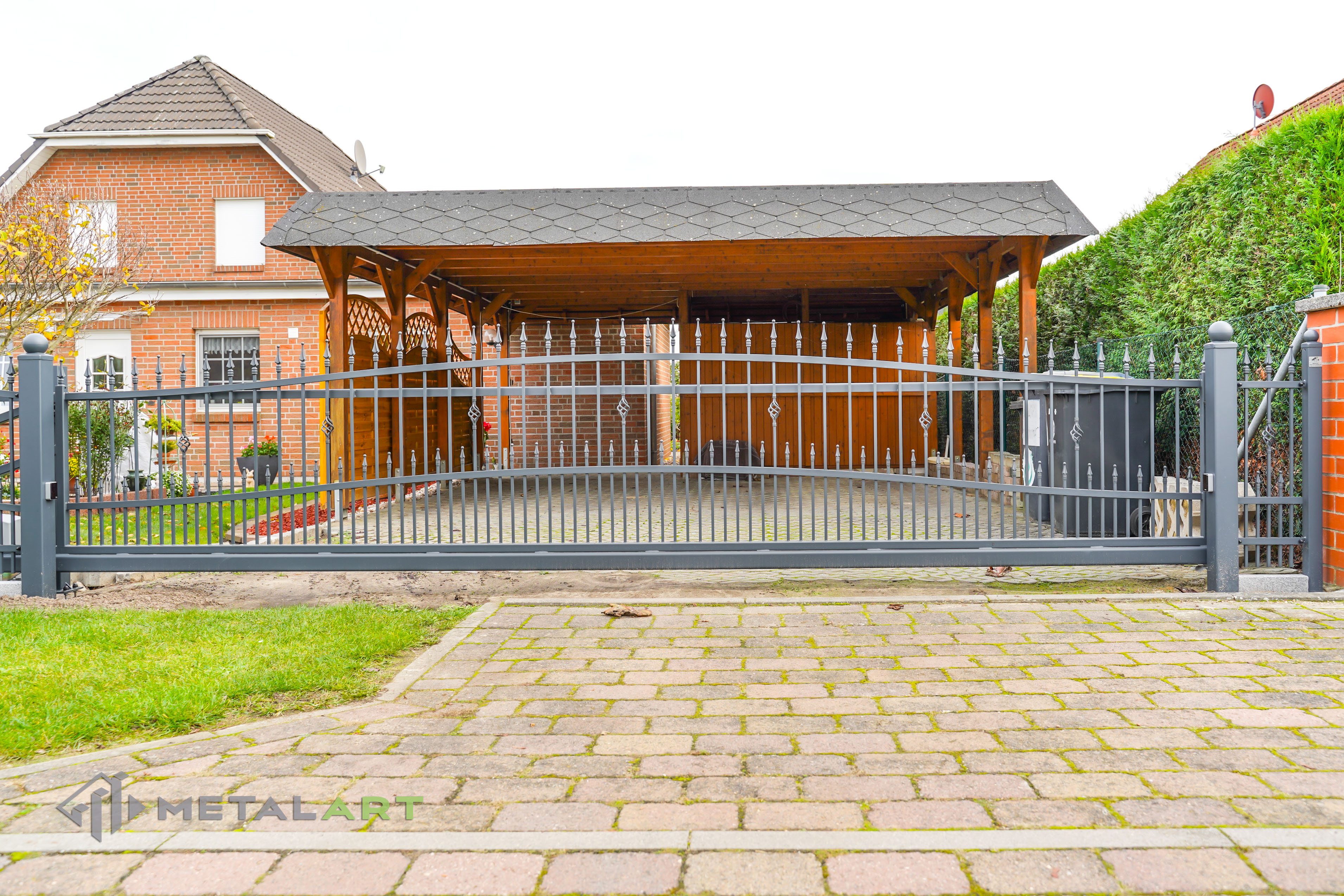 Das Schiebetor ist eine der Varianten (neben dem zweiflügeligen Tor und dem einflügeligen Tor), die wir Ihnen anbieten. Es hängt von Ihren individuellen Bedürfnissen ab, welche Art von Tor verwendet wird. Sowohl Tore als auch Pforten sind im Design immer auf die gesamte Zaunanlage angepasst.