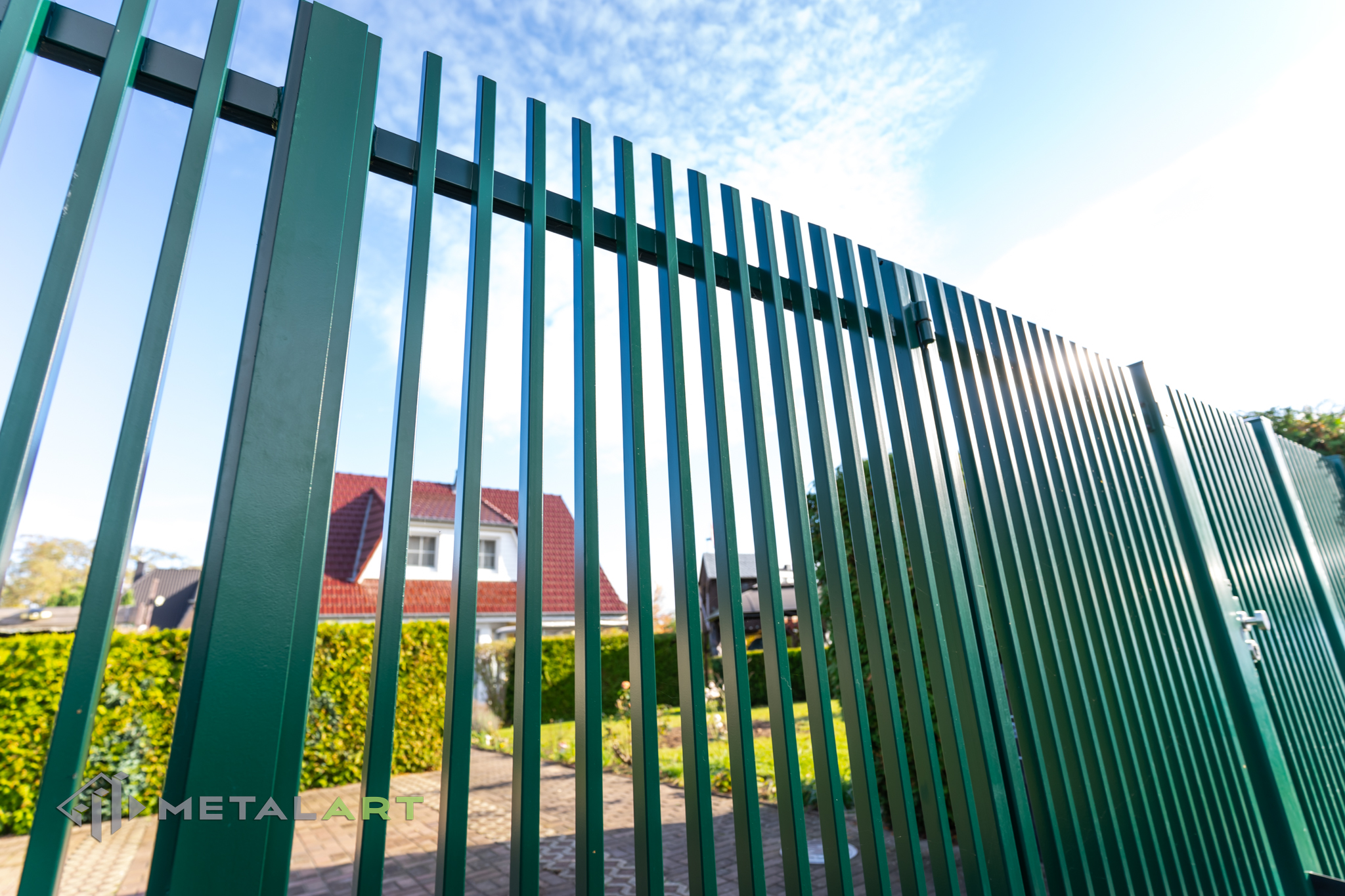 Ein scheinbar gewöhnlicher Zaun, doch dieses Design ist überraschend. Das Material spielt hier eine wichtige Rolle. Der Zaun sieht aus jeder Perspektive anders aus und spielt mit seiner Dreidimensionalität. Der Vorteil dieses Designs ist, dass es neutral bleibt und in viele architektonische Lösungen passt. Die Dicke der Zaunstäben und der Abstand zwischen ihnen, die Höhe und Breite können auf Ihre Bedürfnisse abgestimmt werden. Außerdem können die Zaunstäbe auf unterschiedliche Weise montiert werden.