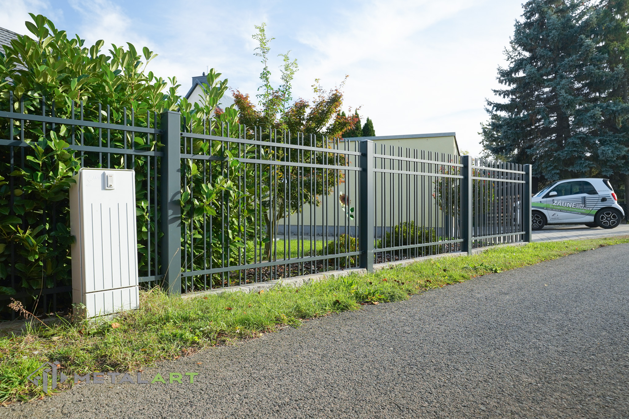 Dieser Zauntyp ist eine klassische und traditionelle Lösung, wenn wir uns die Grundkonstruktion ansehen. Sie lässt viel Licht herein und wirkt durch ihre schlanken Stäbe leicht, dezent und filigran.