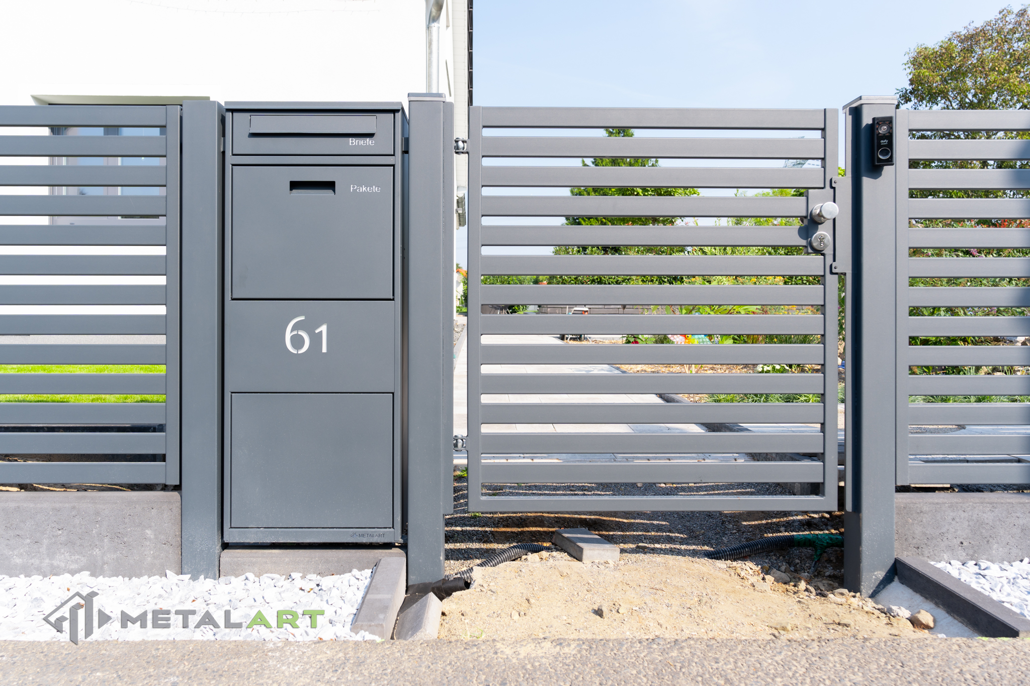 Einflügeltor, Zaunanlage Projekt, Zaun Metal Art, Zäune aus Polen, Zaun Berlin, Zaun günstig kaufen, Zäune und Tore, moderne Zäune, Sichtschutzzäune