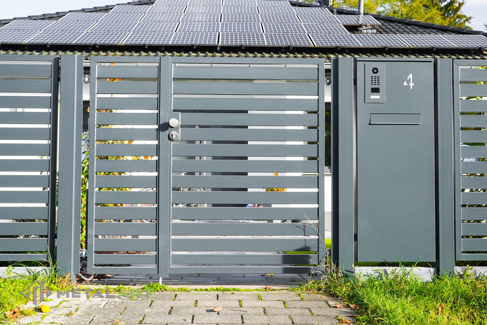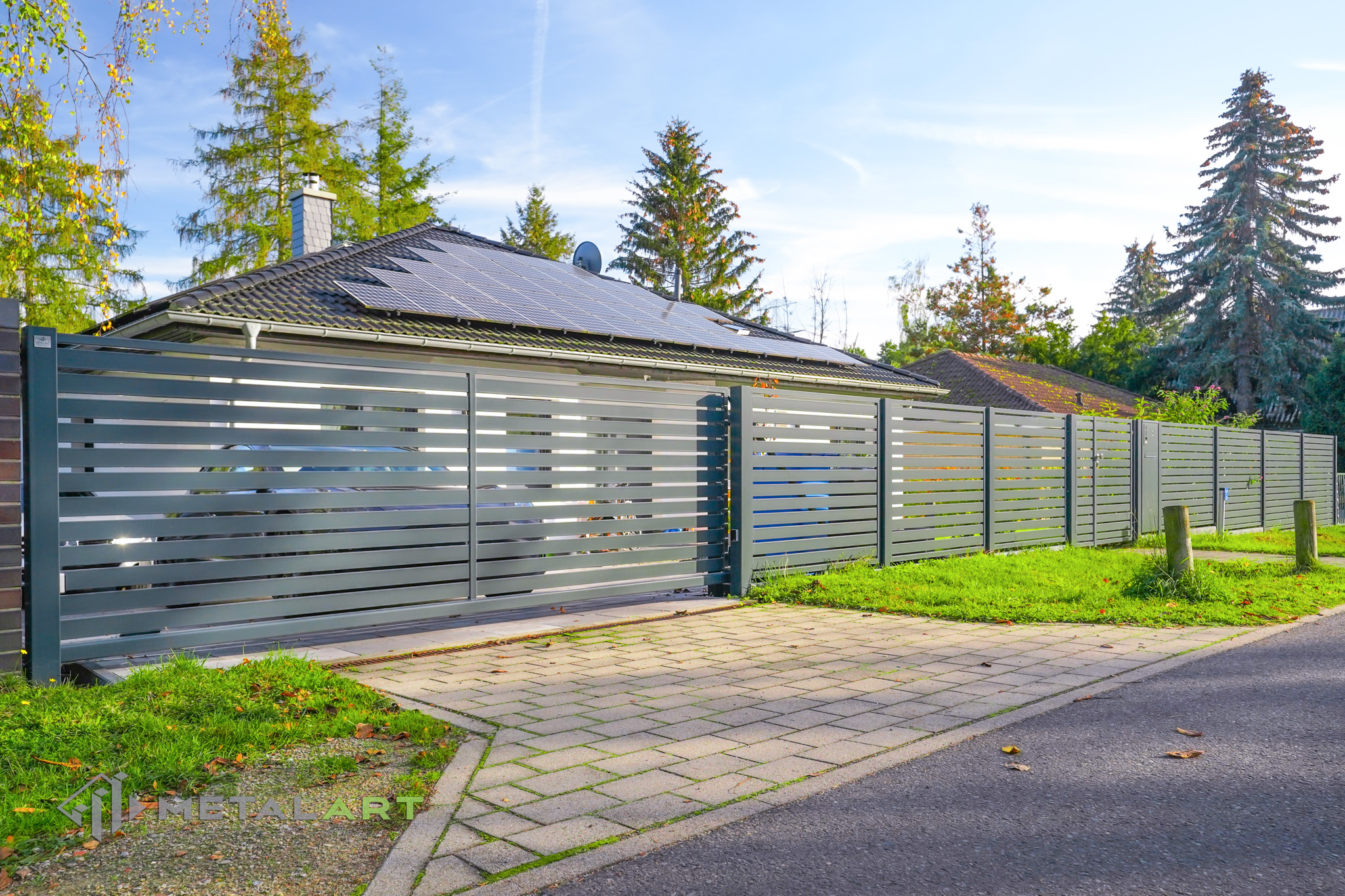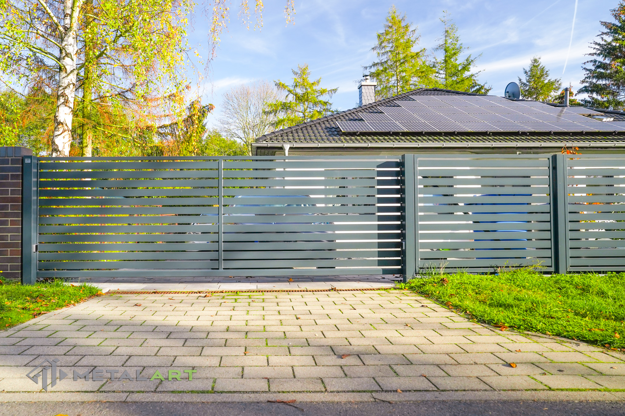 Schiebetore mit integrierter Pforte, moderne Zäune, Zaunanlage Projekt, Zaun Metal Art, Zäune aus Polen, Zaun Berlin, Zaun günstig kaufen, Zäune und Tore, moderne Zäune, Sichtschutzzäune