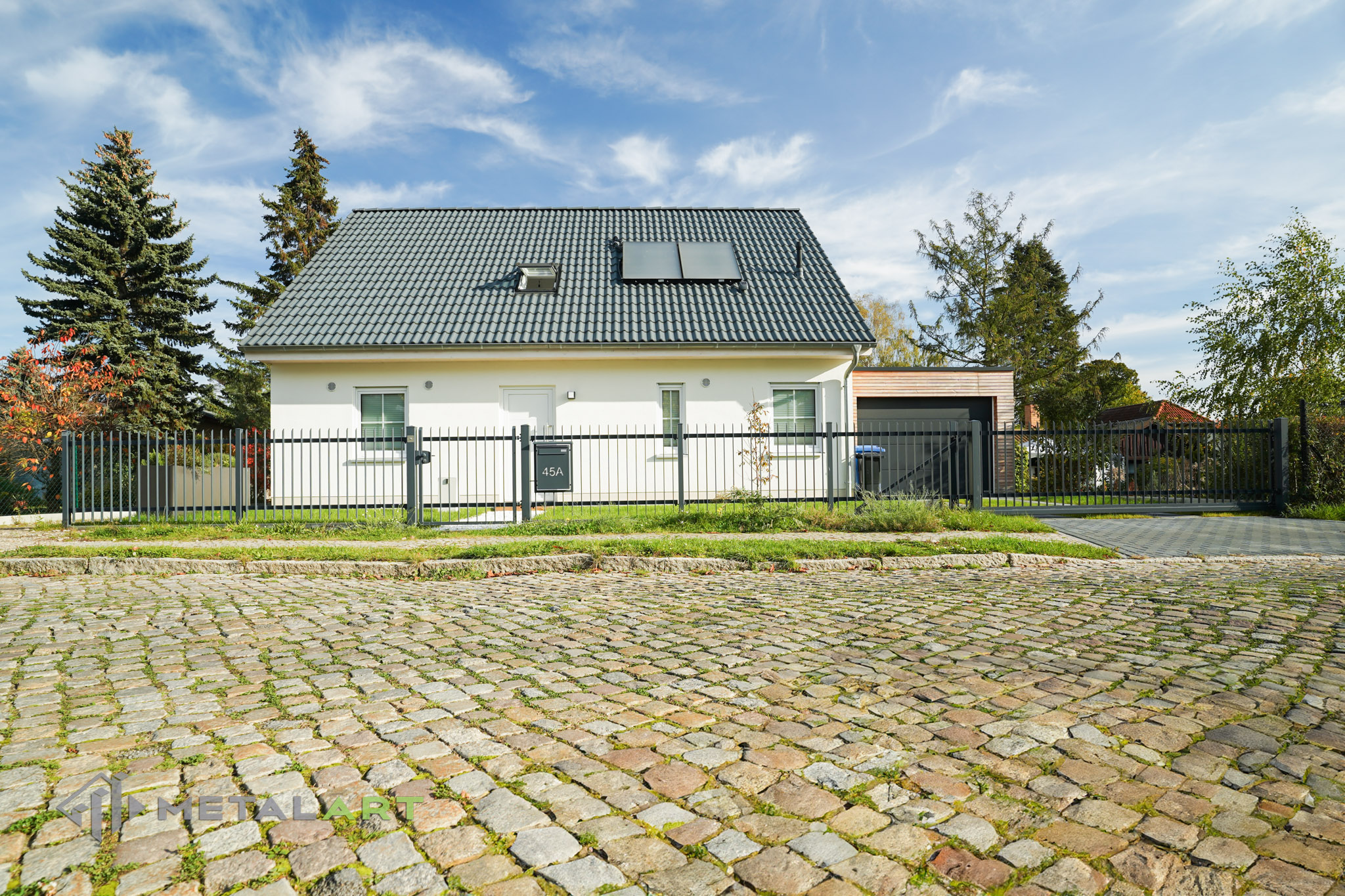 Die Schiebetore funktionieren bei dieser Art von Zäunen besonders gut! Das Schiebetor ist eine der Varianten (neben dem zweiflügeligen Tor und dem einflügeligen Tor), die wir Ihnen anbieten. Es hängt von Ihren individuellen Bedürfnissen ab, welche Art von Tor verwendet wird.