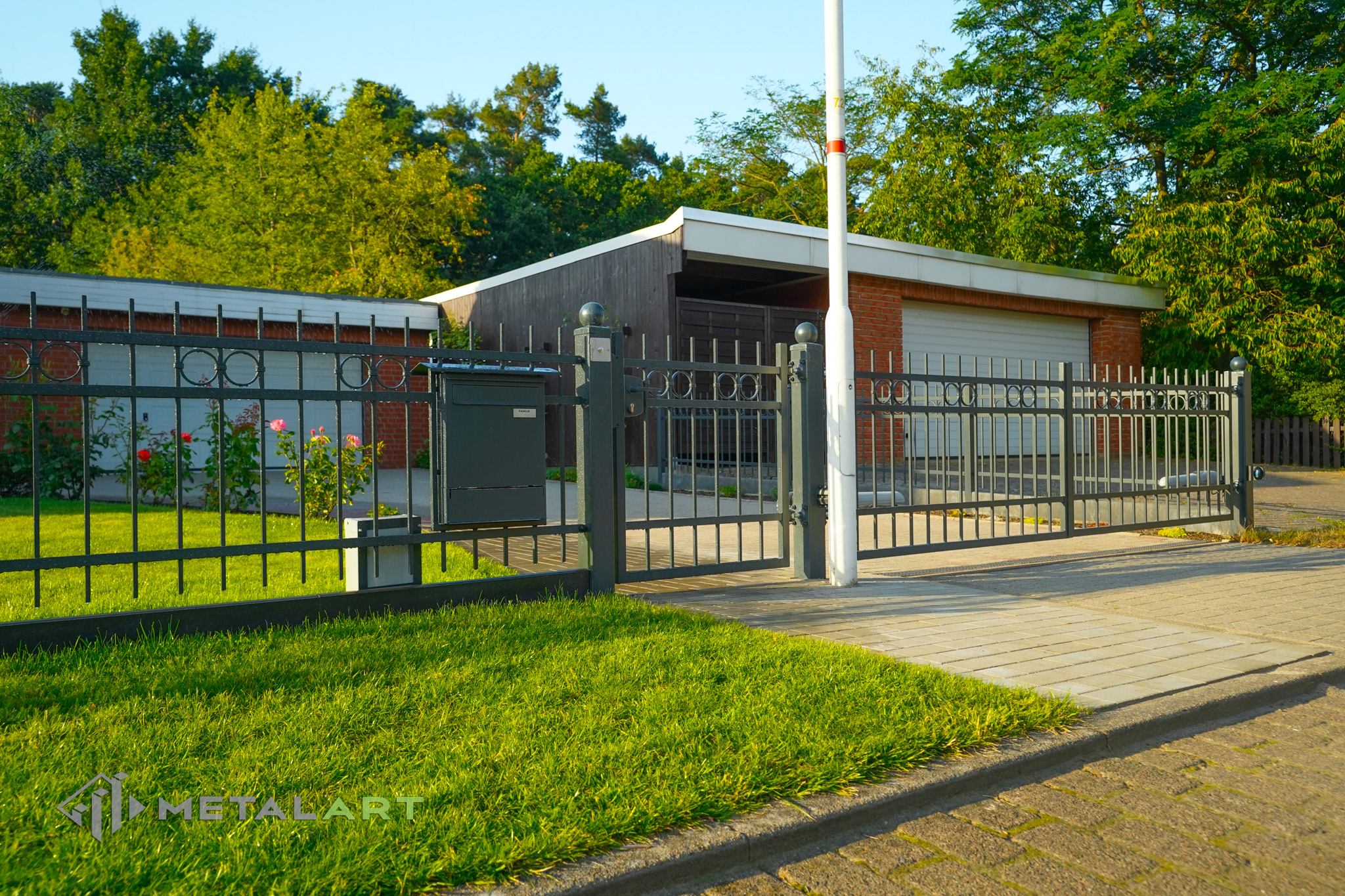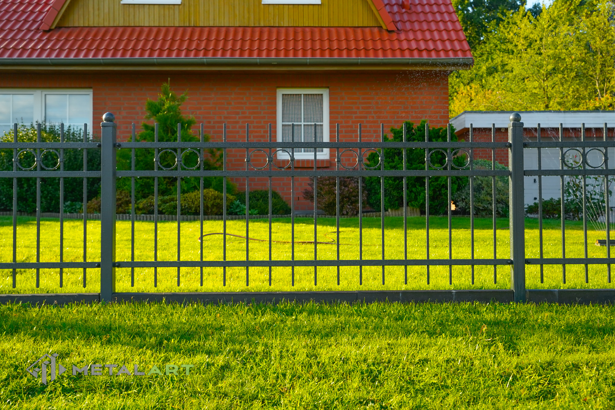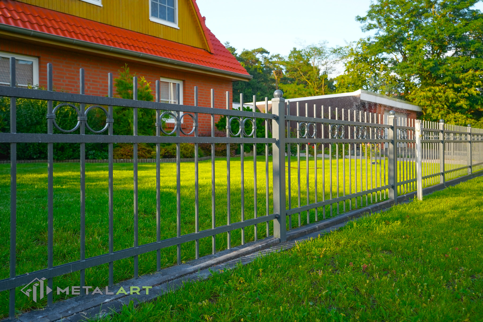 In diesem Projekt wurde der obere und untere Teil des Zauns dekoriert. Gerade Linien sind das dominierende Element, das das Zaunfeld verdickt, und das Ganze wird mit einem anmutigen Ornament auf der Oberseite abgeschlossen. Die Zaunkappen verleihen dem Zaun Erhabenheit und ordnen gleichzeitig die Vielzahl der hier verwendeten Ornamente. Ein wirklich schöner Zaun!