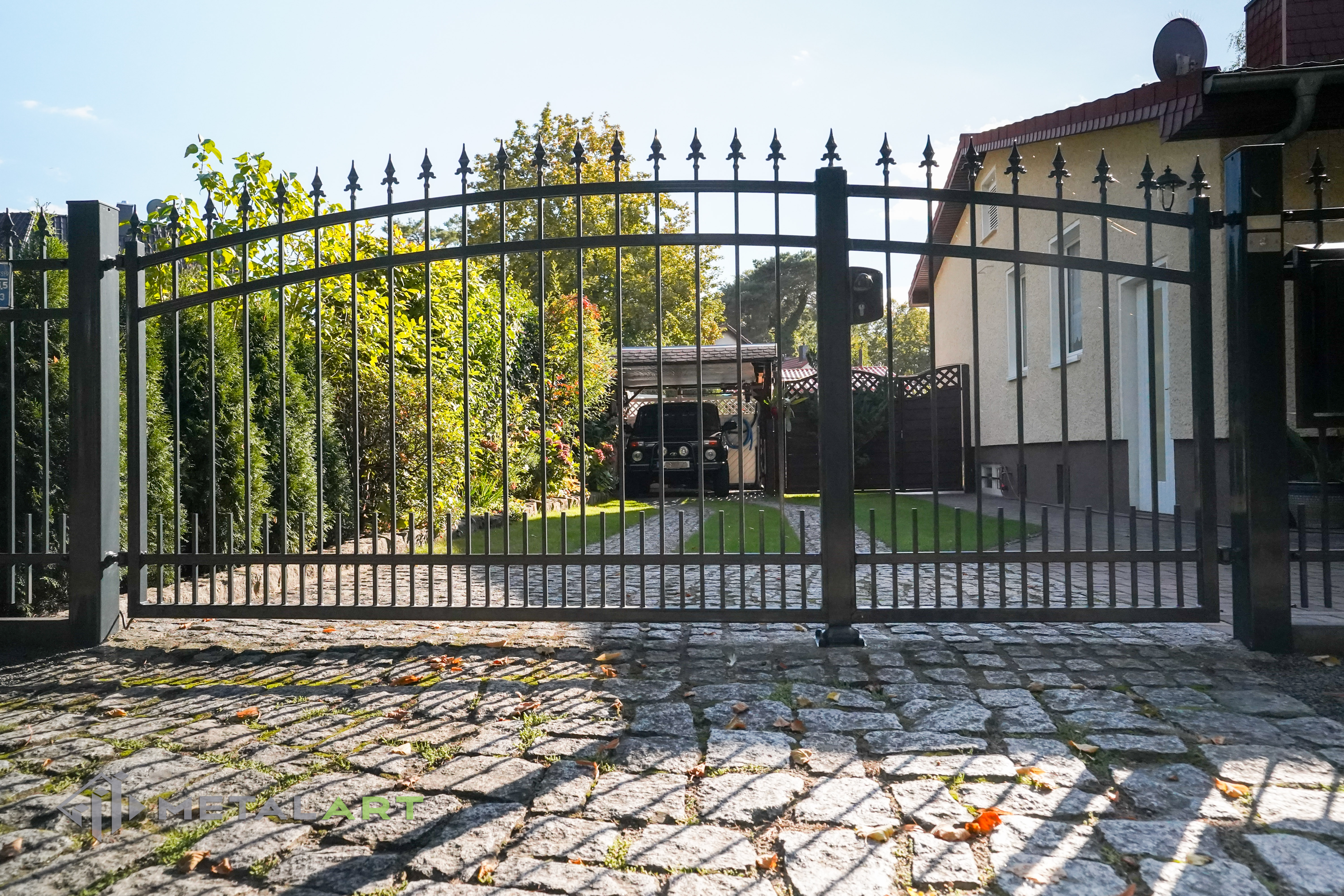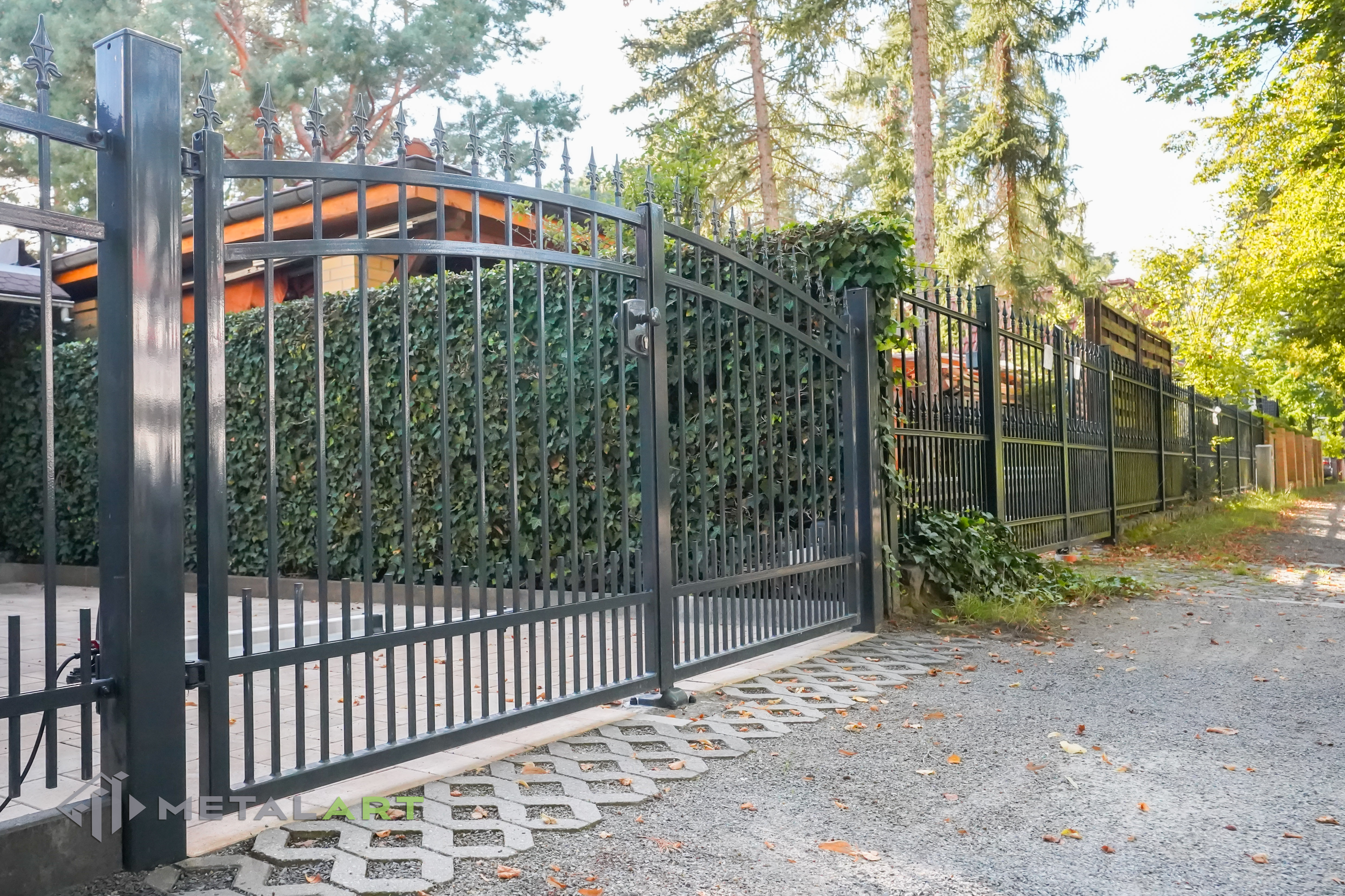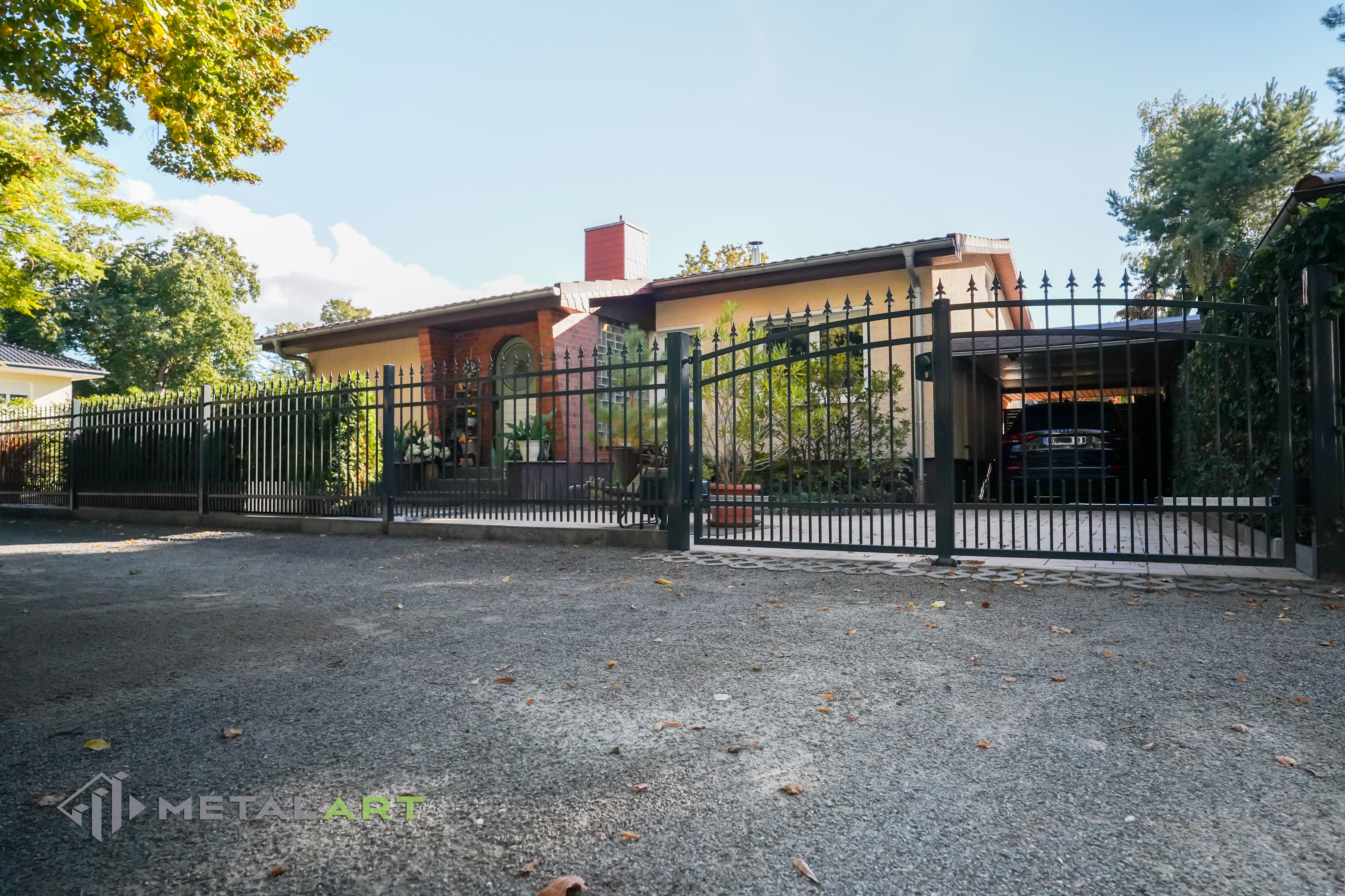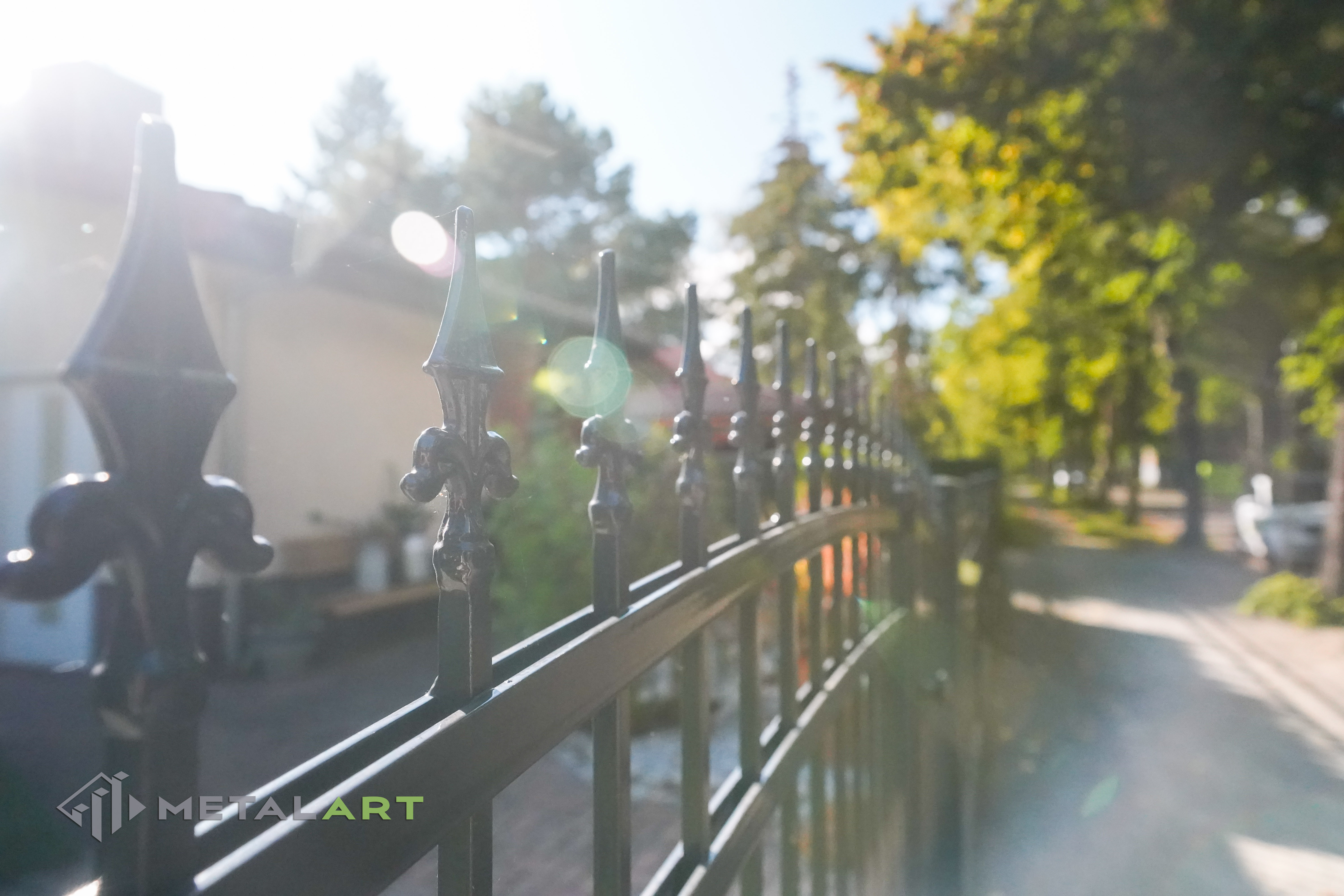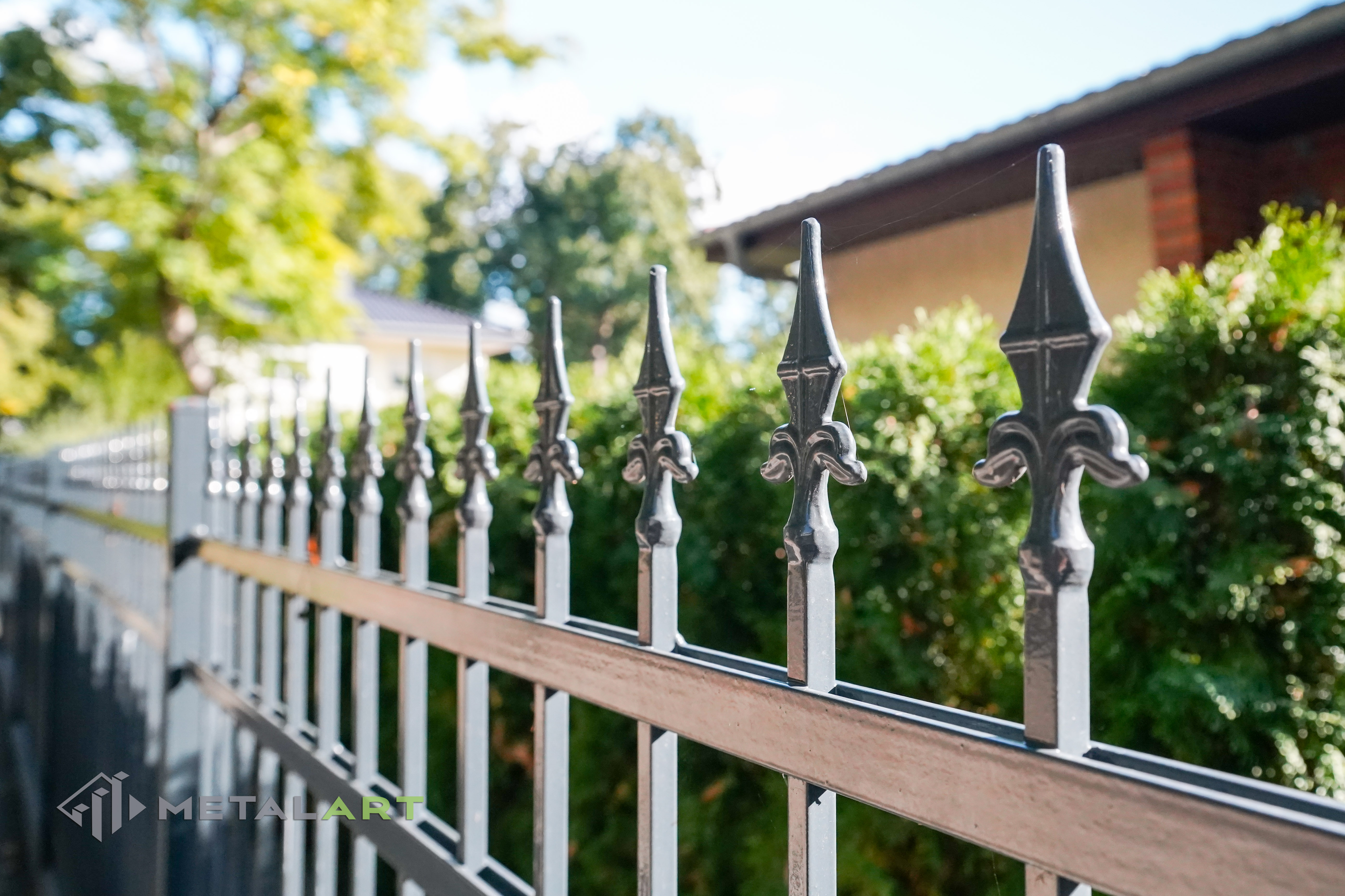 Bei diesem Projekt handelt es sich um eine klassische Lösung mit ein paar Ergänzungen wie zusätzlichen Querstreben, Verdickung des unteren Teils des Zauns mit zusätzlichen kurzen Stäben, kugelförmigen Kappen und Abschrägung der Stäben, die allesamt Stärke und Statik verleihen und gleichzeitig einen ruhigen und leichten Touch behalten.