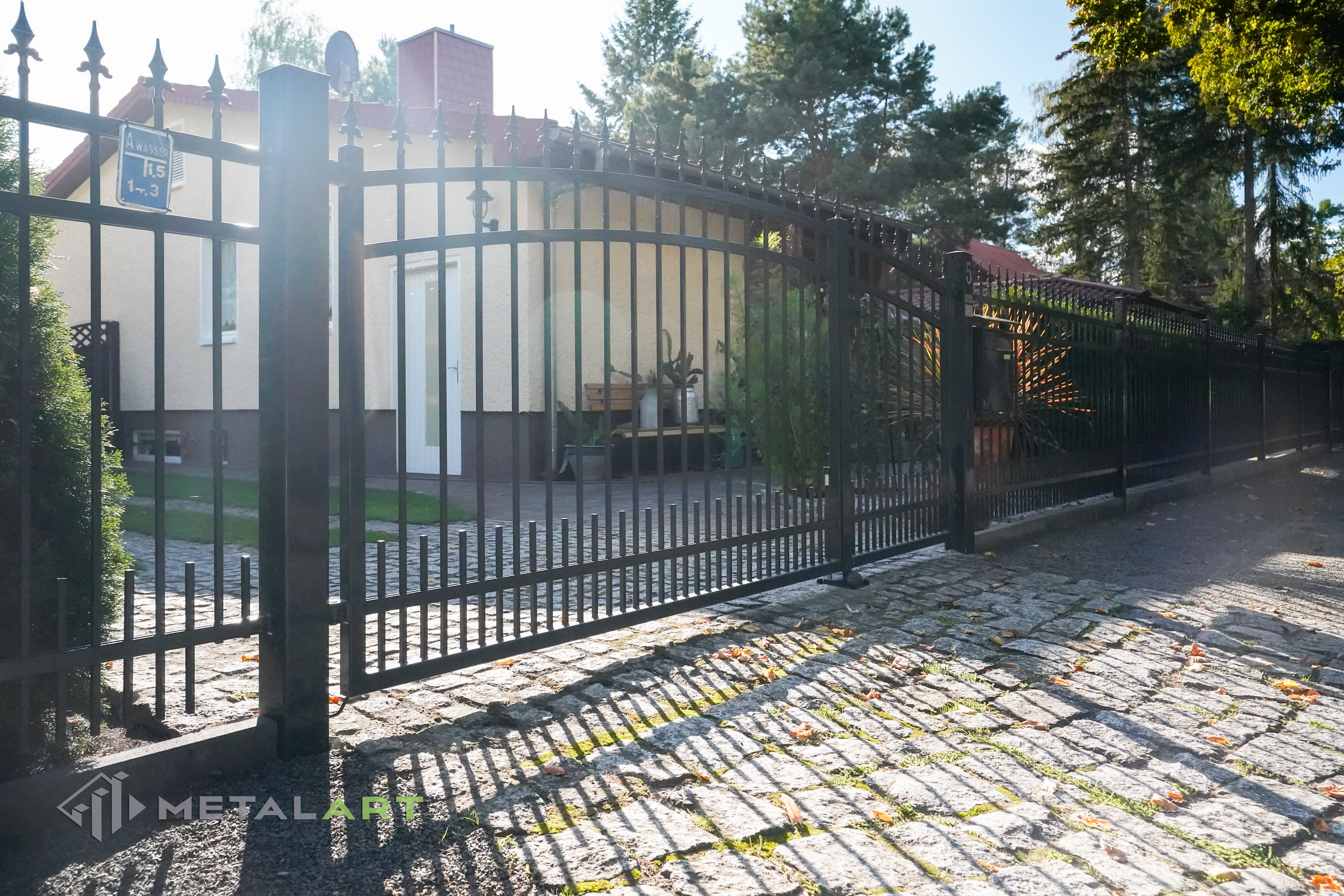 Dieser Zauntyp ist eine klassische und traditionelle Lösung, wenn wir uns die Grundkonstruktion ansehen. Sie lässt viel Licht herein und wirkt durch ihre schlanken Zaunstäbe leicht, dezent und filigran.