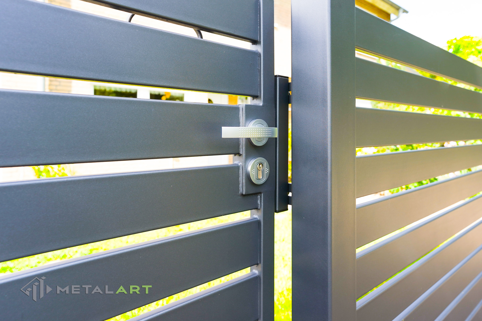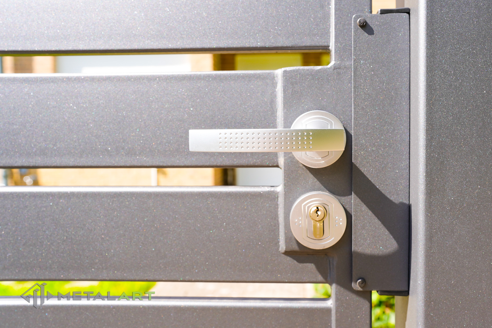 Die Größe und der Abstand der Querprofile können frei bestimmt werden. Auch Farben: matt oder glänzend, mit Textur, Struktur, Hammerschlag oder Gilmmer sind auf Anfrage erhältlich.