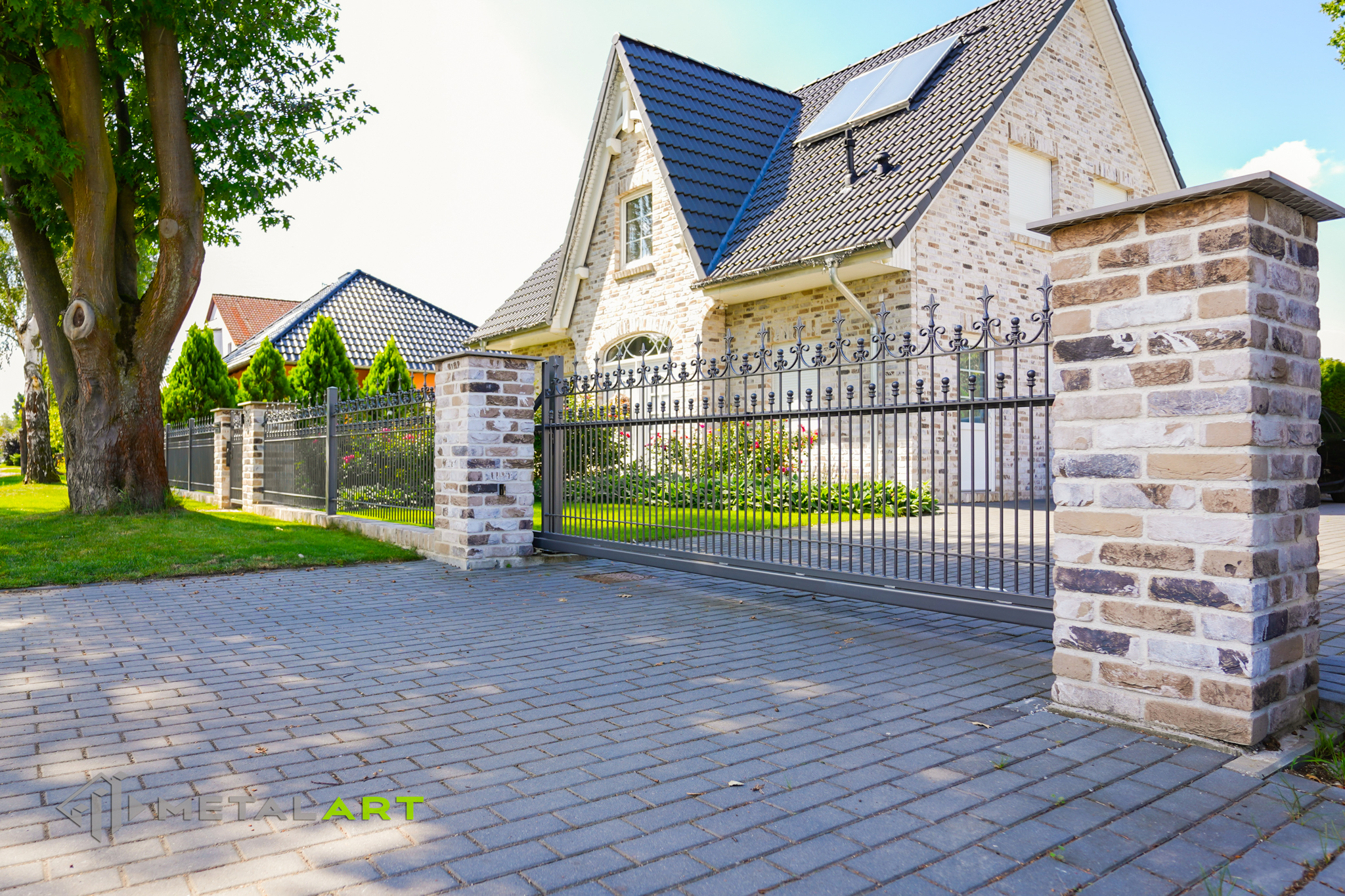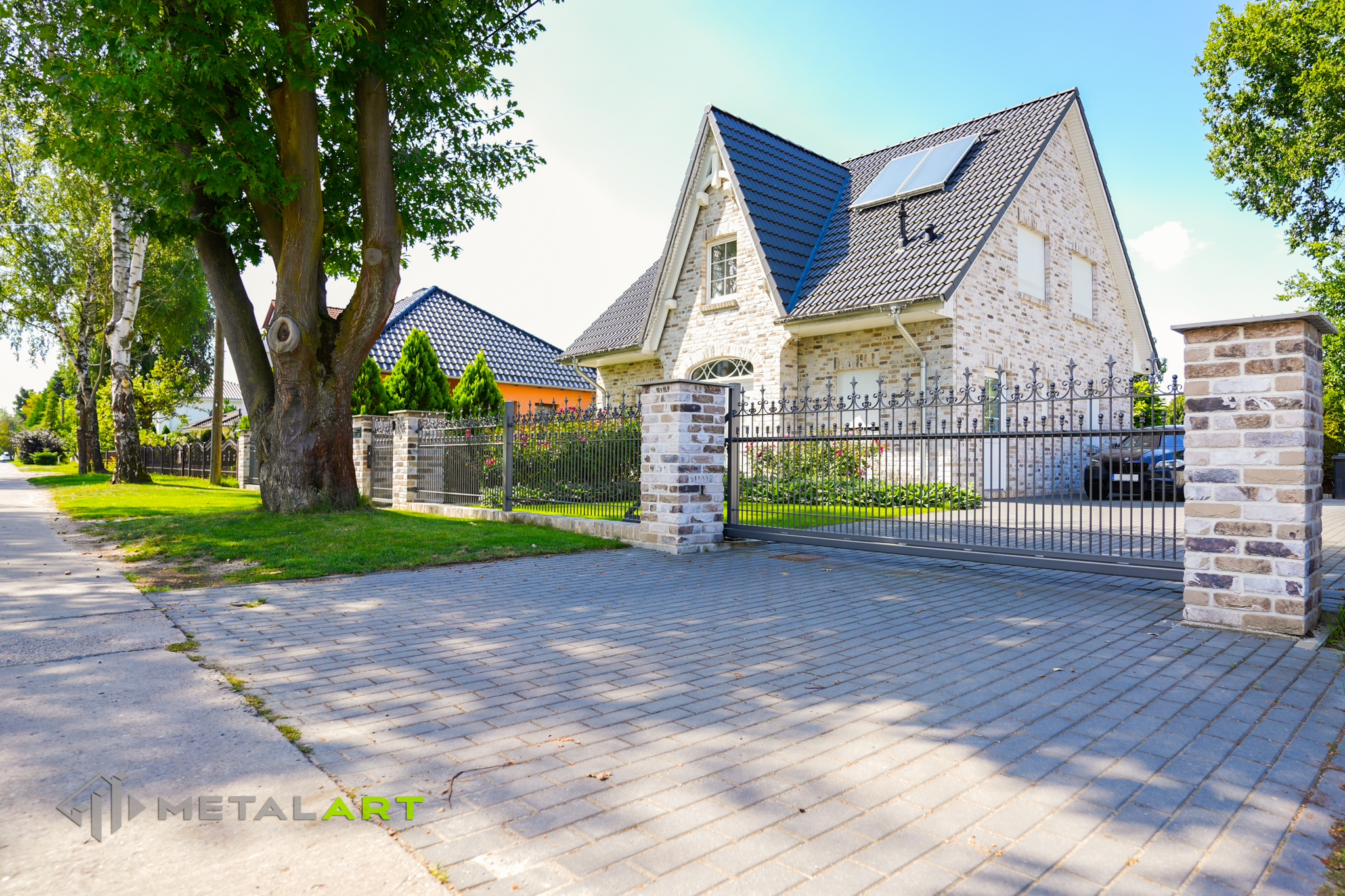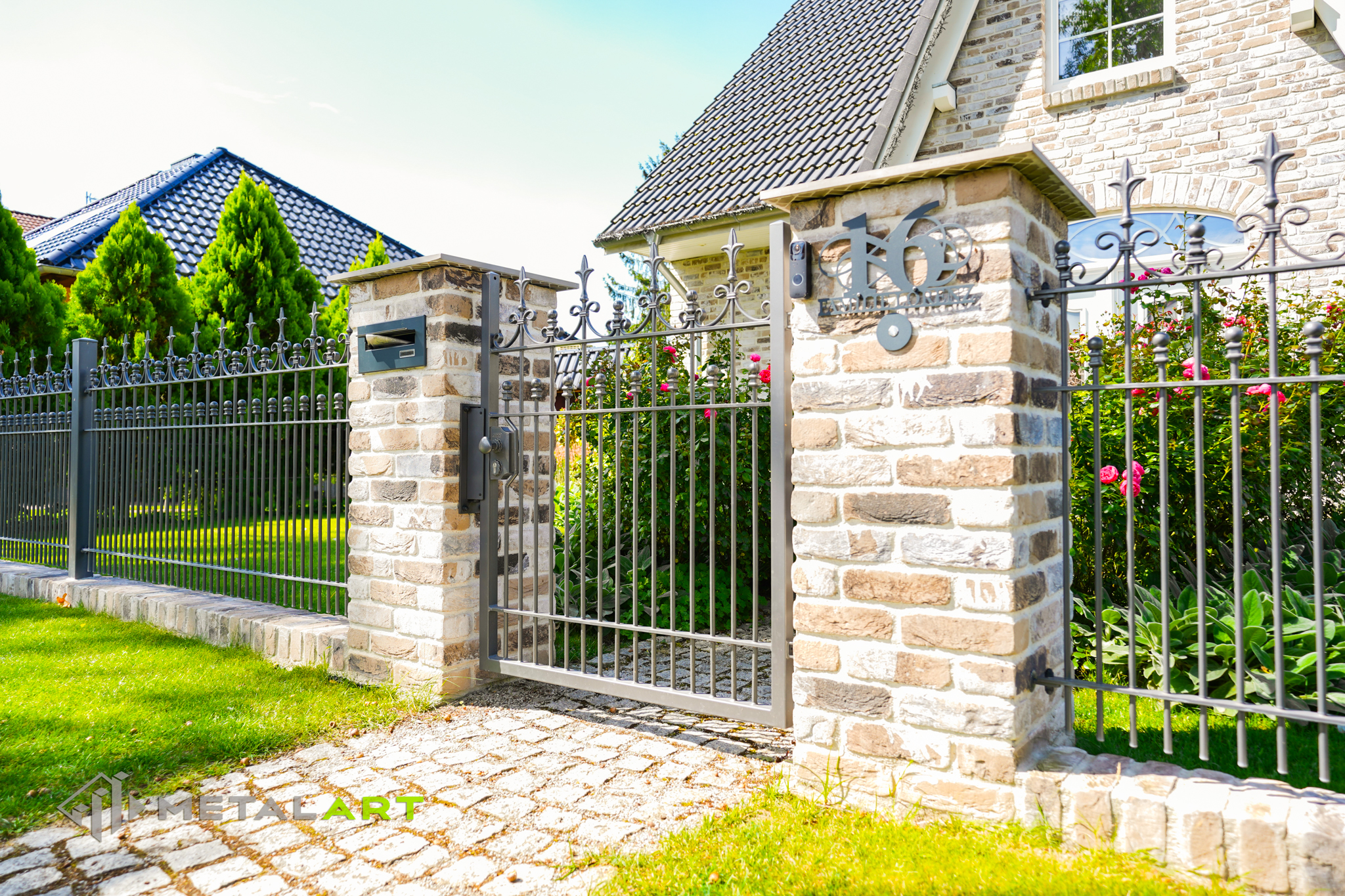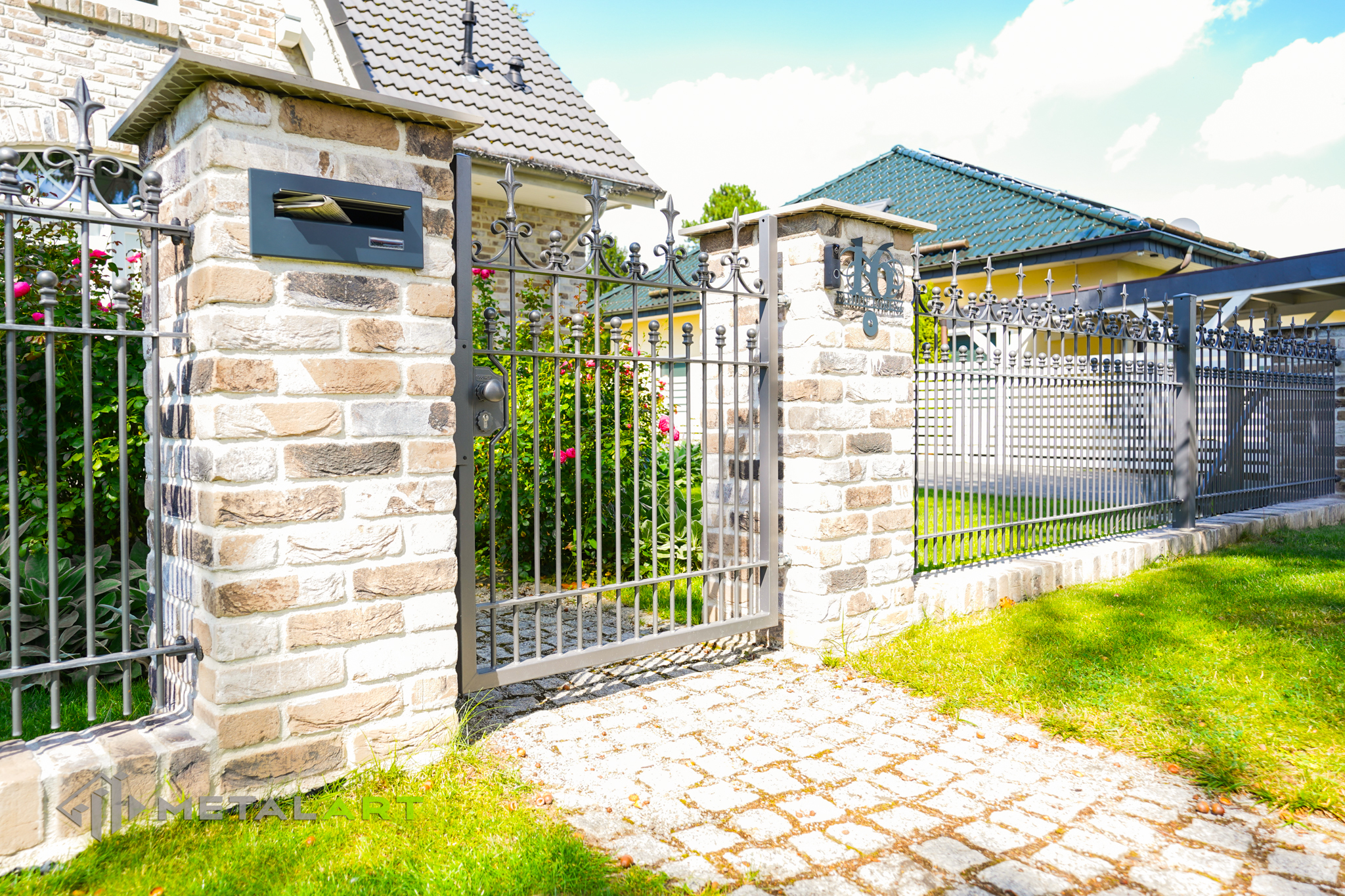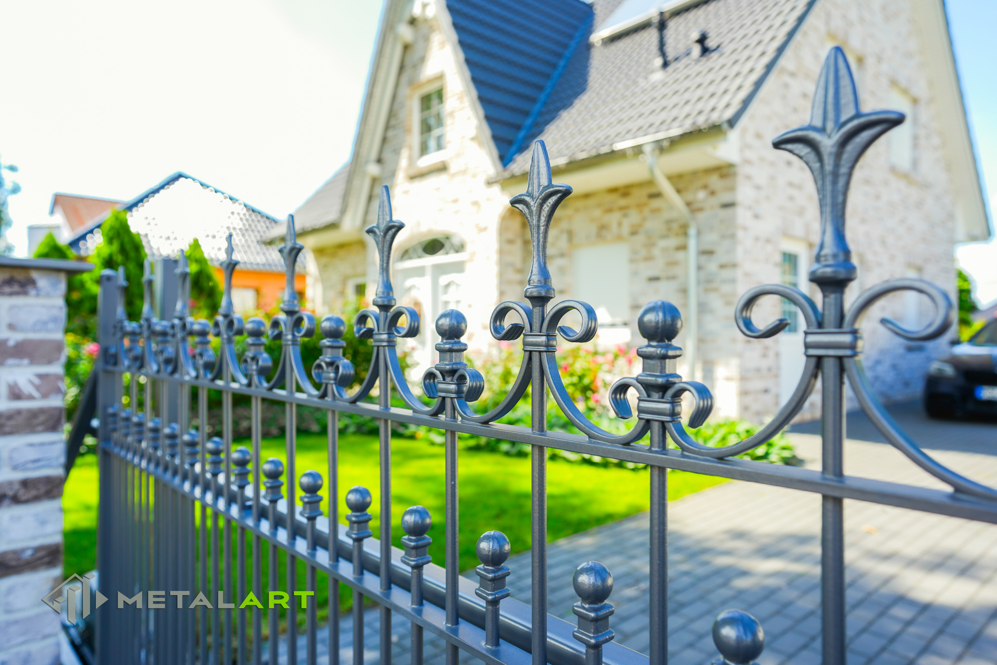 Die Zaunspitzen haben nicht nur eine Schutzfunktion, sondern sind auch eine Möglichkeit, interessante ornamentale Lösungen anzuwenden. In diesem Fall wurden Kugeln in die Spitzen eingelassen.