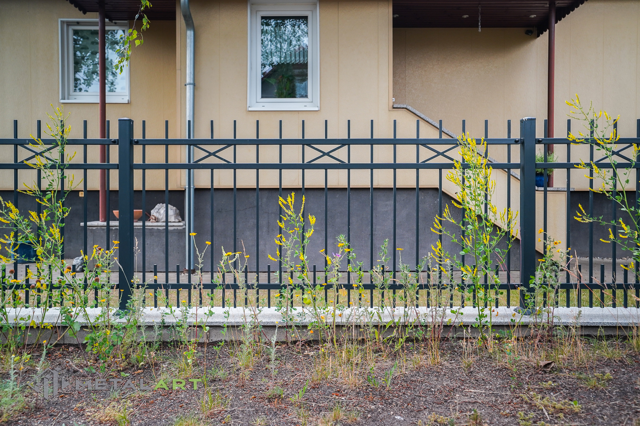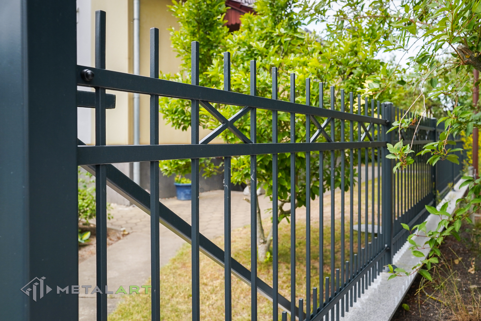 In diesem Projekt wurde der obere und untere Teil des Zauns dekoriert. Gerade Linien sind das dominierende Element, das das Zaunfeld verdickt, und das Ganze wird mit einem anmutigen Ornament auf der Oberseite abgeschlossen. Die Zaunkappen verleihen dem Zaun Erhabenheit und ordnen gleichzeitig die Vielzahl der hier verwendeten Ornamente. Ein wirklich schöner Zaun!